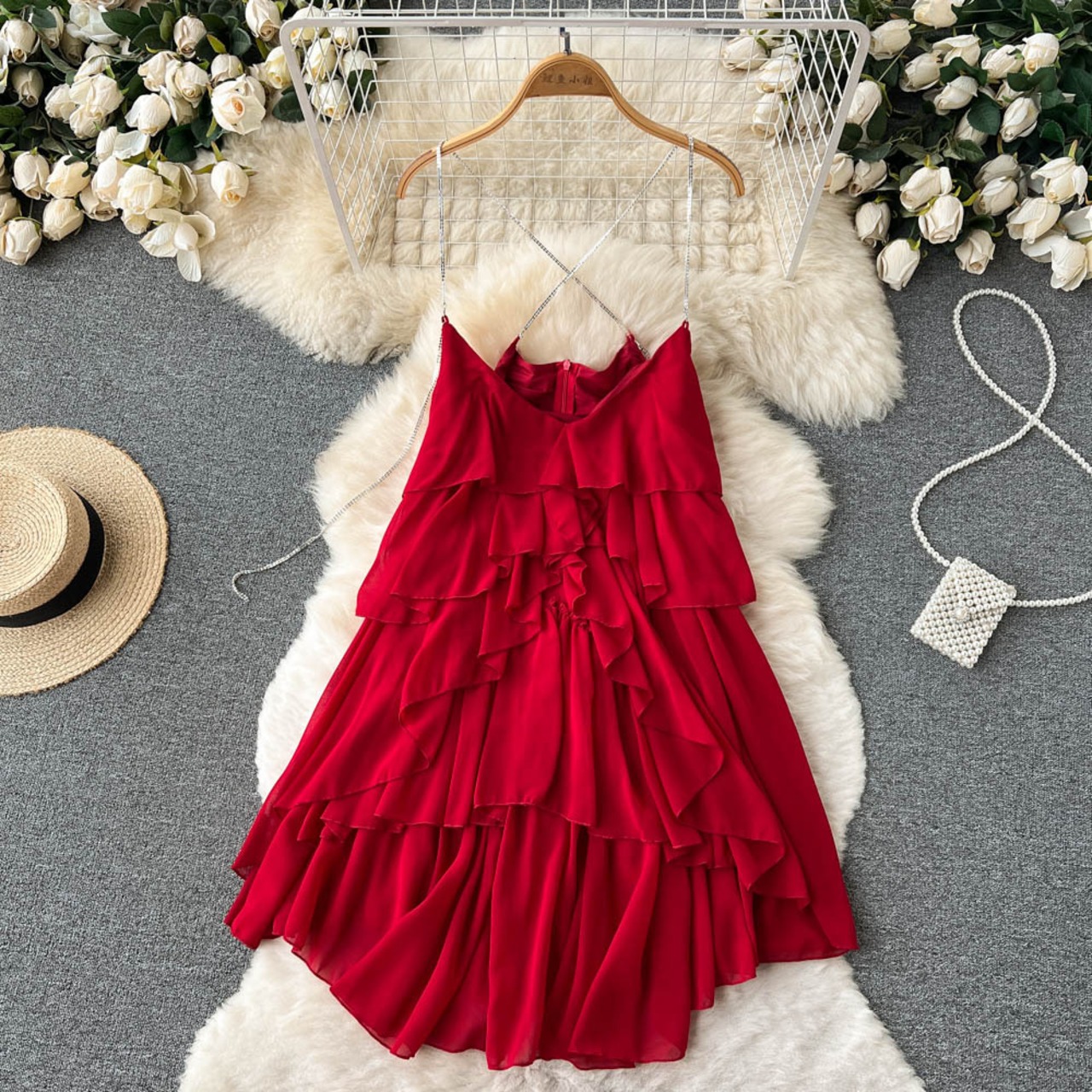 ホリデースタイルピュアディレッションホットガールVネックサスペンダードレスレディースサマーニューイレギュラーフリルスーパーフェアリーAラインスカート 夏物 lyxaj70343200952