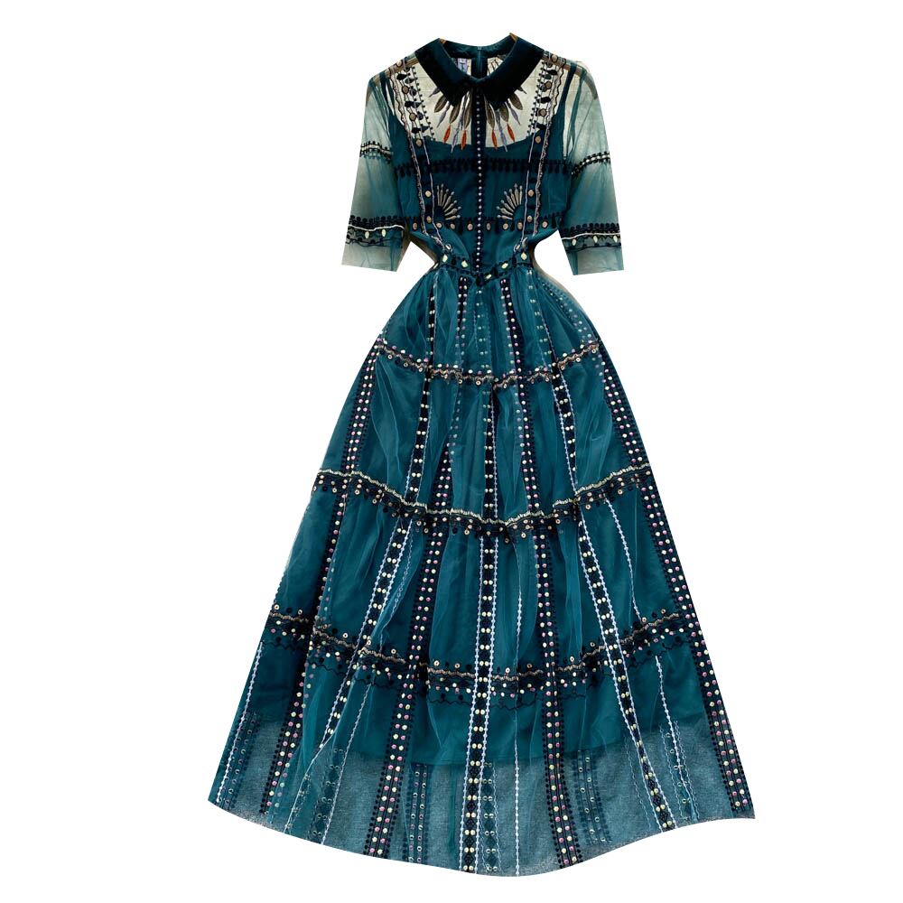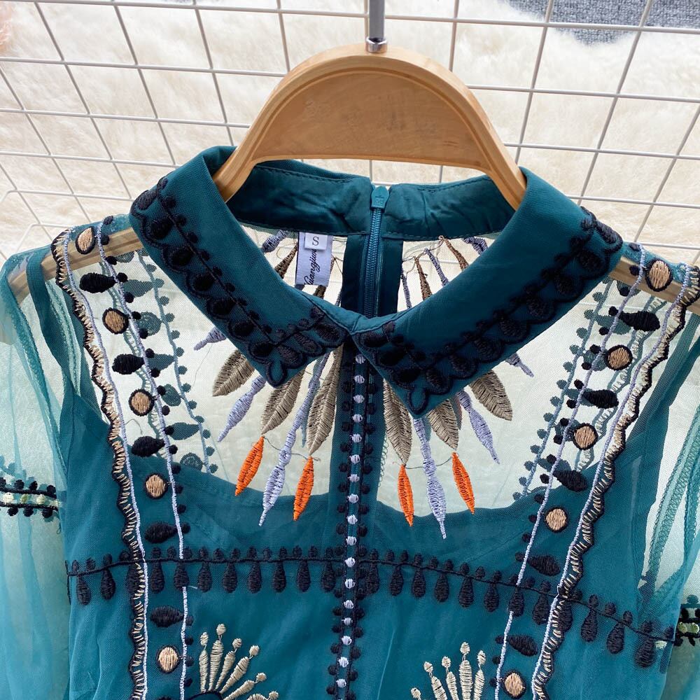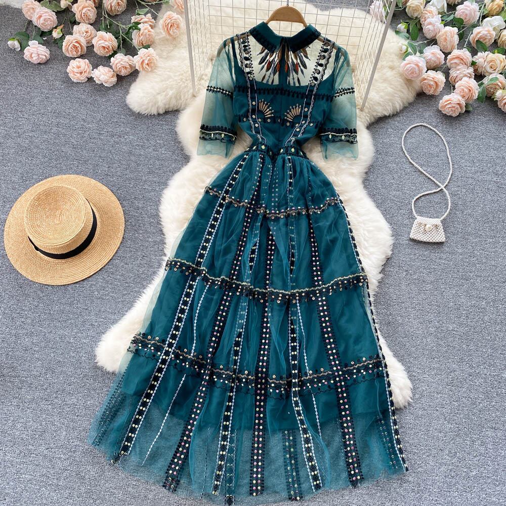 テンペラメントレディースハイエンドメッシュ刺繡フレンチドレスレディースロングサマー2022新しいウエスト丈ドレス 刺繍 夏物 lyxaj36397200978