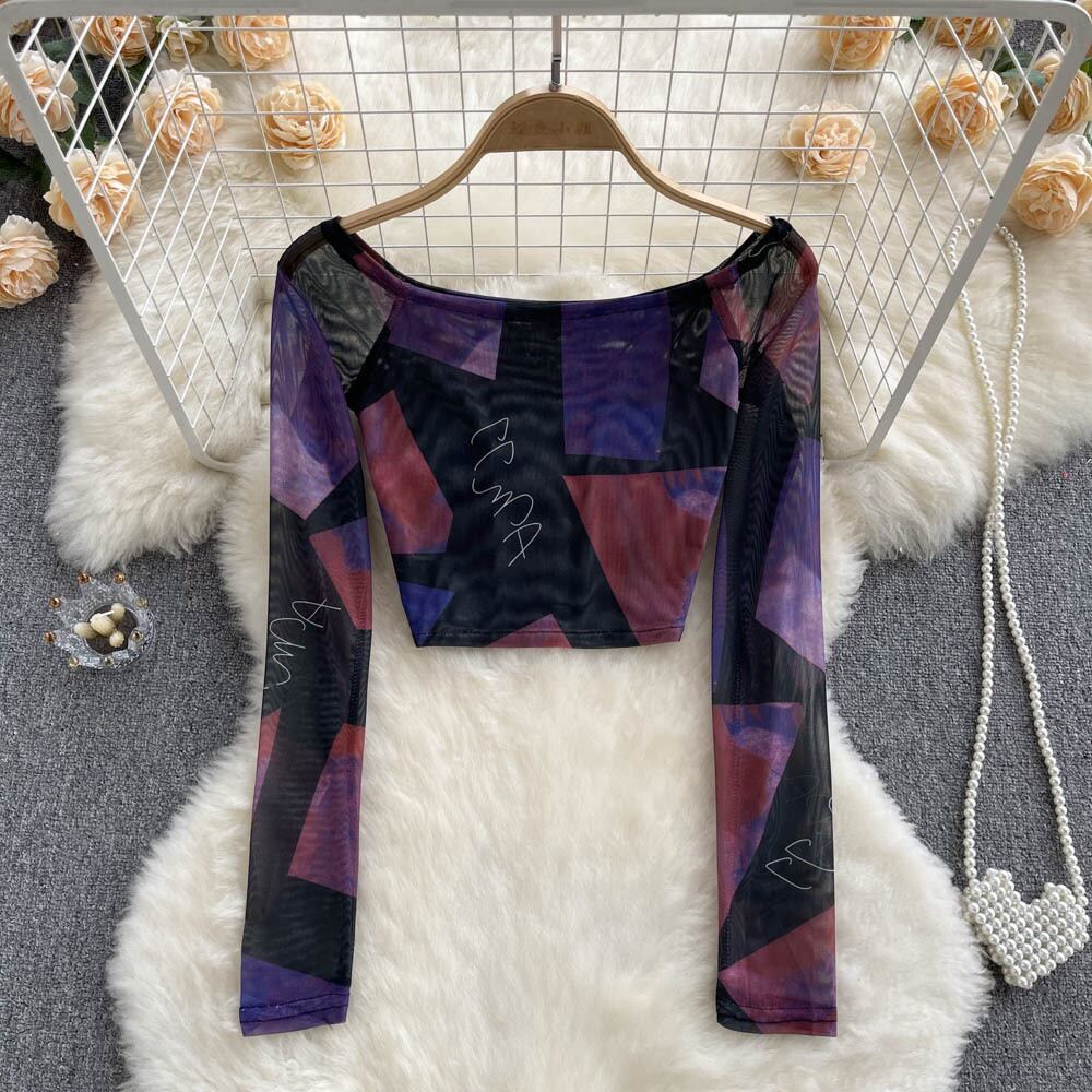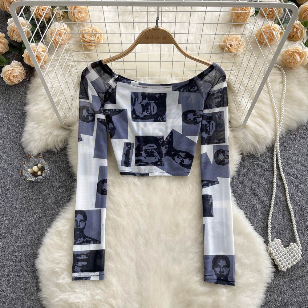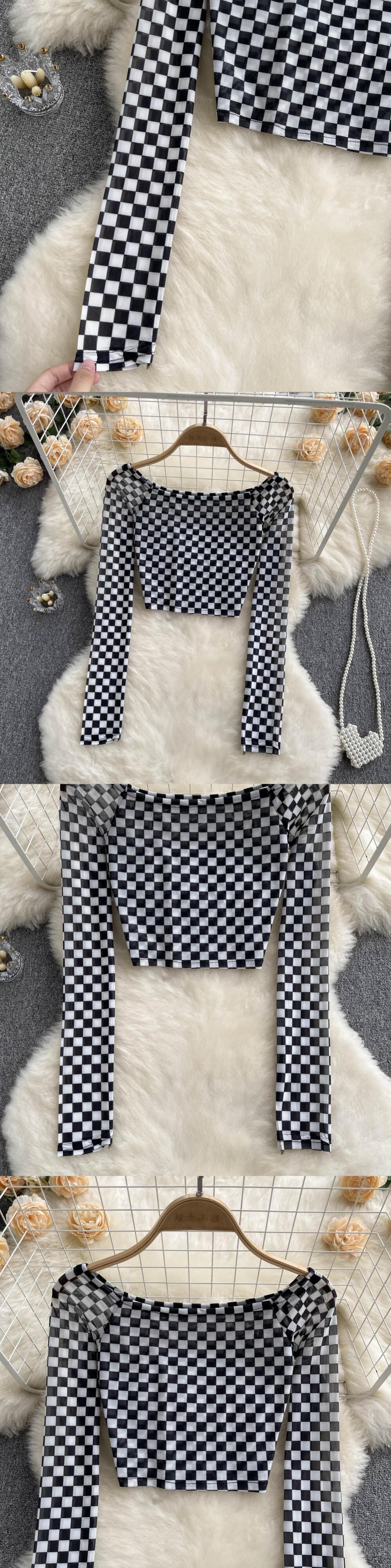 韓国版シックな黒と白のチェック柄長袖Tシャツ女性の2022年夏新しい短気リーク襟骨シャツ潮 ショート ロング ホワイト ブラック サマー 夏物 lyxaj7257587983