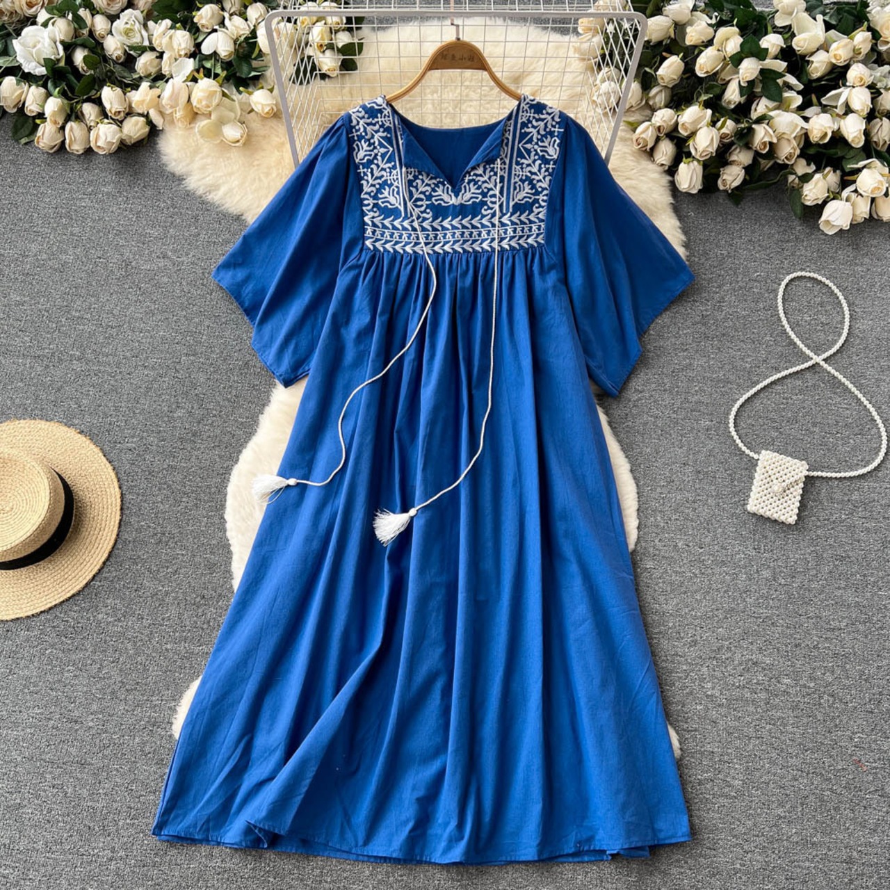 フランスのレトロなエスニック刺繍スーパー妖精気質ドレス女性の夏の新しい文学的な緩い大スイングミドルスカート サマー 夏物 lyxaj91438122700