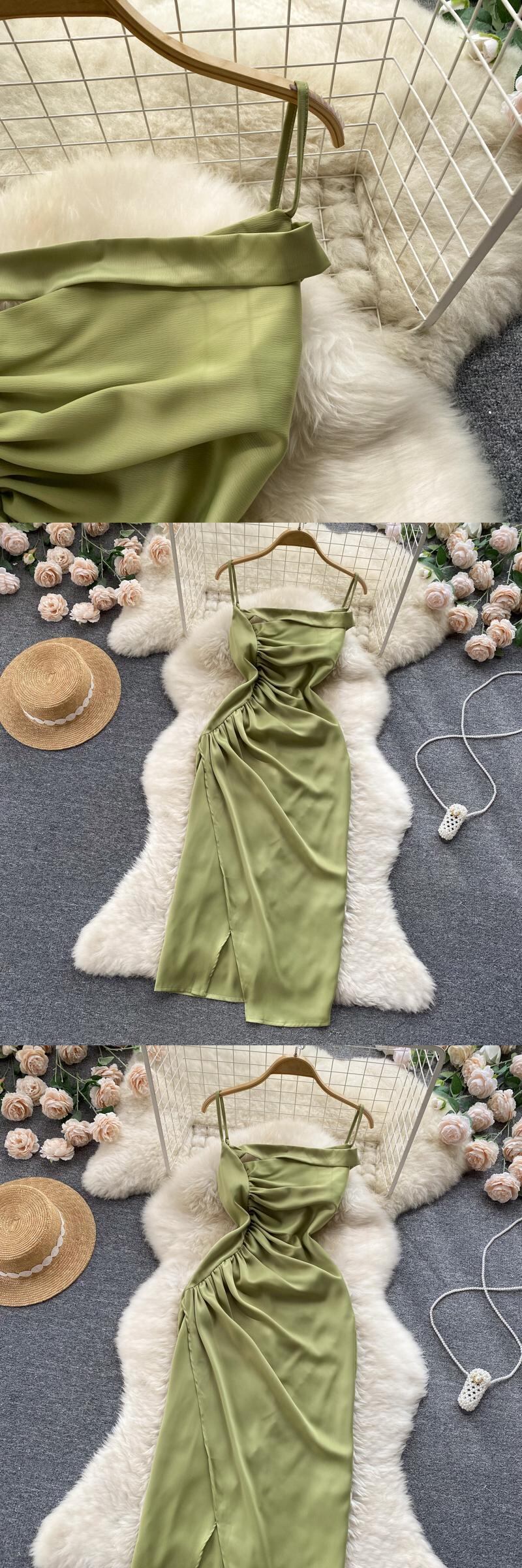 フランスのレトロなデザインのハイエンドスカートプリーツウエスト気質ロイヤルシスターライトおなじみのスタイルのサスペンダードレス女性の夏 サマー 夏物 lyxaj44871984127