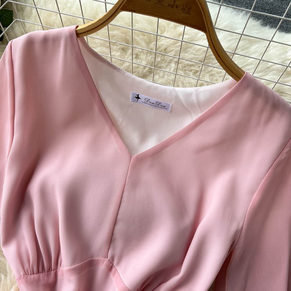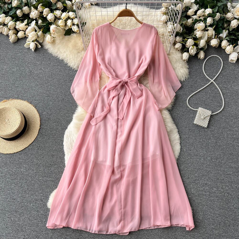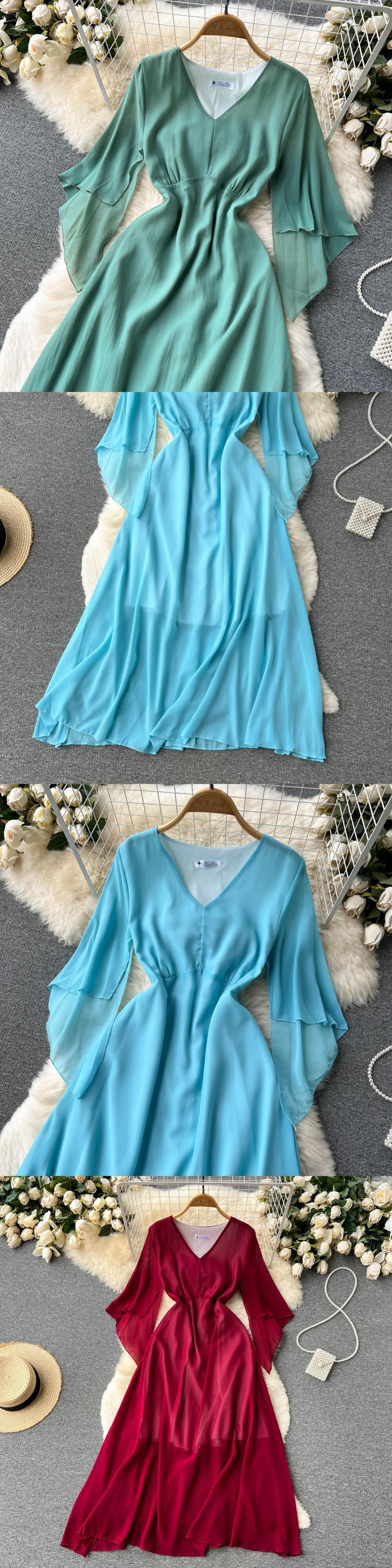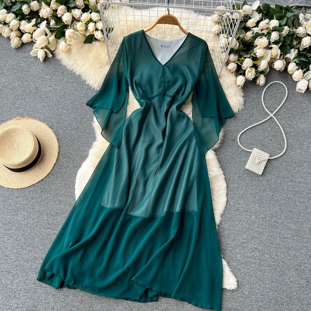 ヨーロッパとアメリカの2022年夏の新しい半袖フランスのレトロなニッチなデザインのハイエンドのトランペットスリーブエレガントなドレスの女性 サマー 夏物 ヨーロピアン lyxaj93385689935