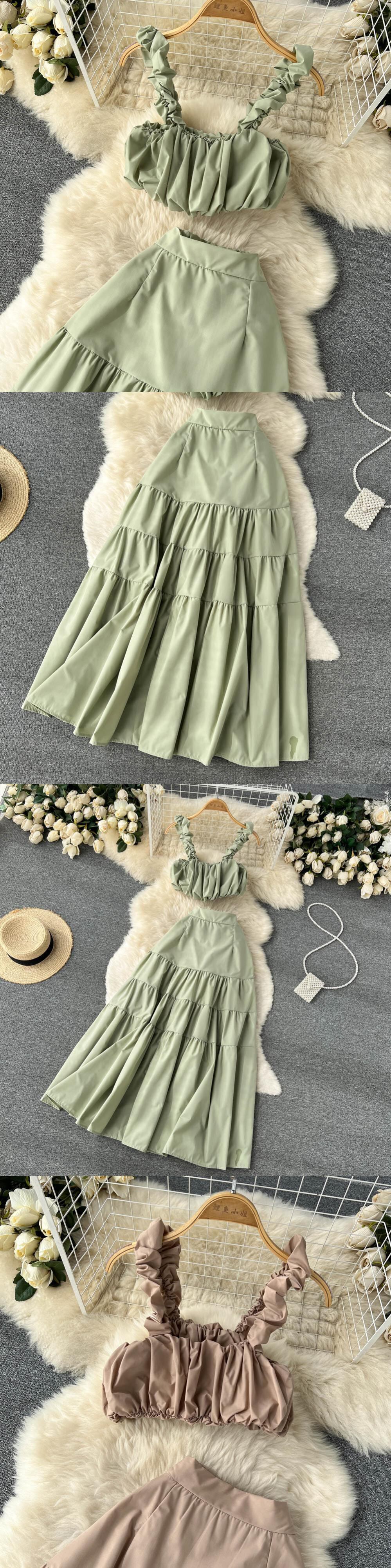 insシックなデザインセンスニッチキャミソールホットガールショートトップハイウエストスカートウエスタンスタイルツーピース女性 ハイウェスト lyxaj43128822692