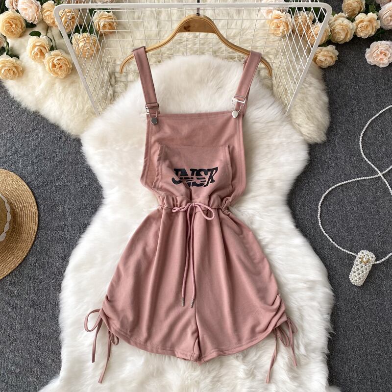 小さなサスペンダージャンプスーツ年齢を減らすカジュアルパンツ2022夏の新しい巾着ウエストワイドレッグショーツ サマー 夏物 ブルマー lyxaj37244072535