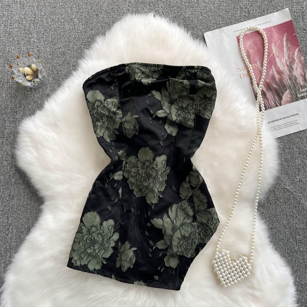 レトロなジャカードチューブトップトップレディースデザインセンスニッチイレギュラー裾スリムショートセクションボトミングシャツインナーとアウターウェア lyxaj10587365780
