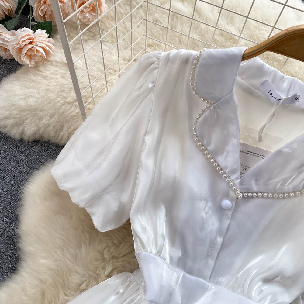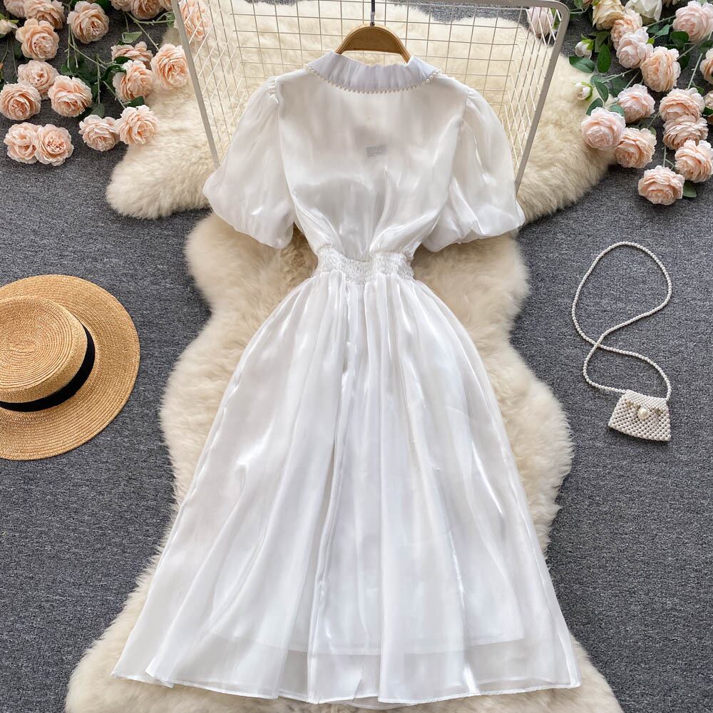 フレンチハイエンドラペルパフスリーブドレス2022年夏新気性ホワイトウエスト初恋フェアリースカート サマー 夏物 lyxaj64136667479