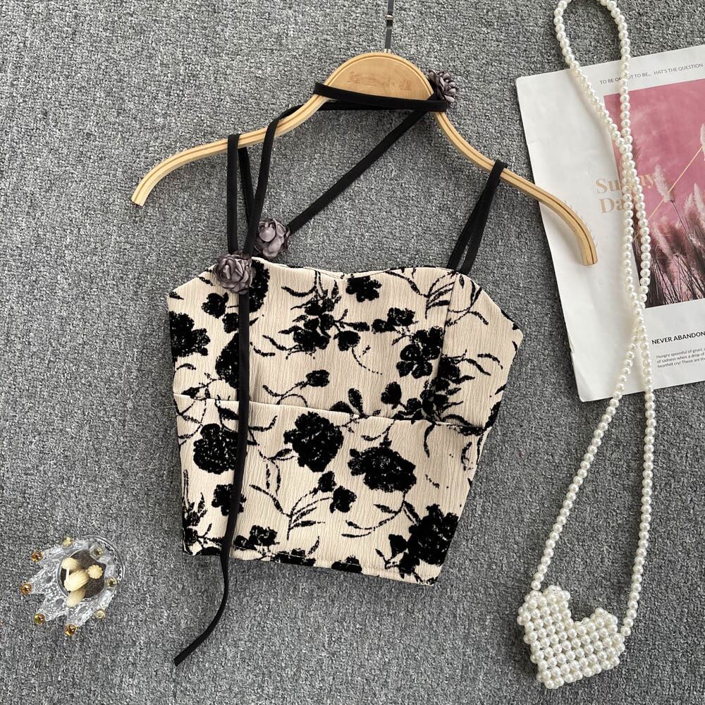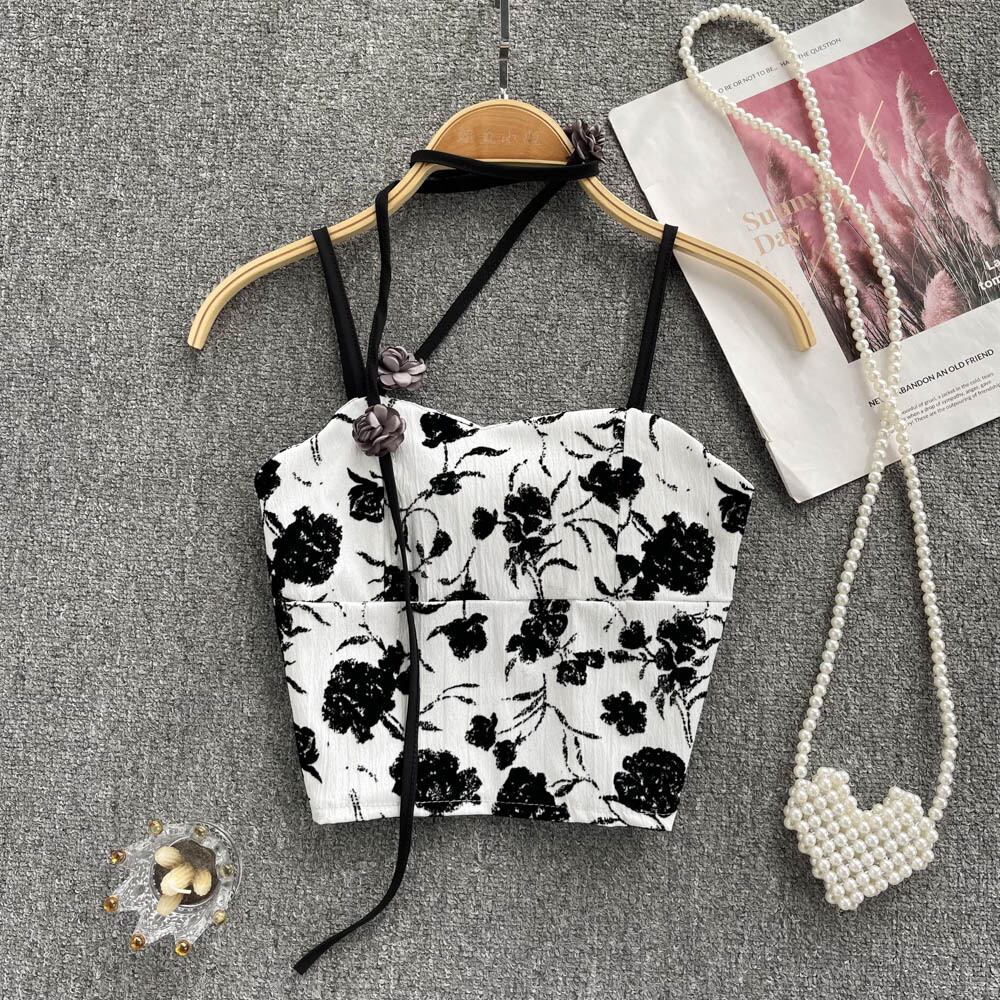 甘くてスパイシーなプリントの年齢を減らすキャミソールの女性のアウターウェア2022年夏の新しいハイウエストのおへそのような気質のオールマッチトップ 大人ガーリー スウィート キュート カジュアル サマー 夏物 lyxaj89033037940