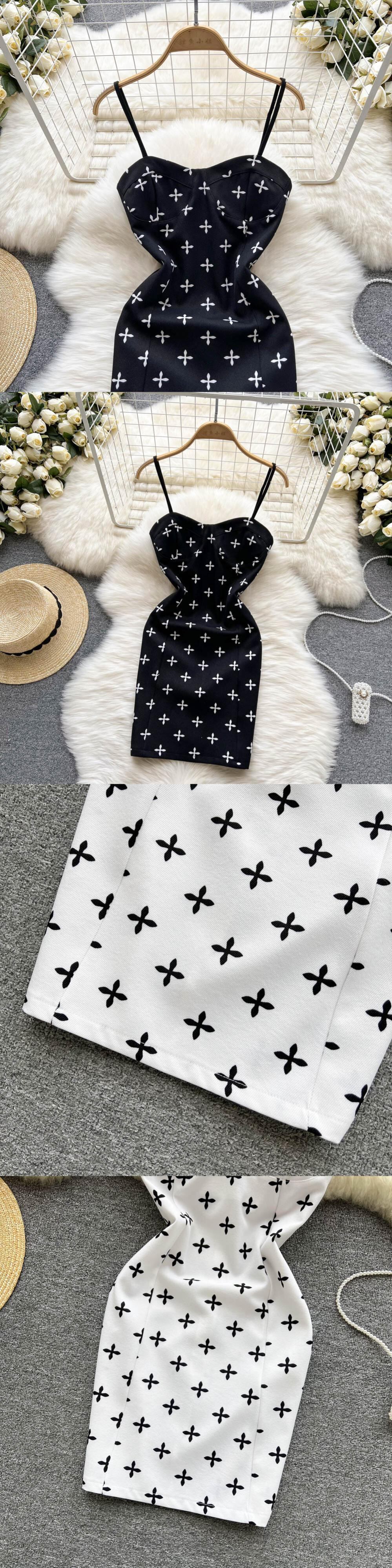 Suspender skirt women's summer new style temperament slim slimming bag hip tight sexy printed lady dress プリント サマー 夏物 スカート スリム lyxaj59955114124