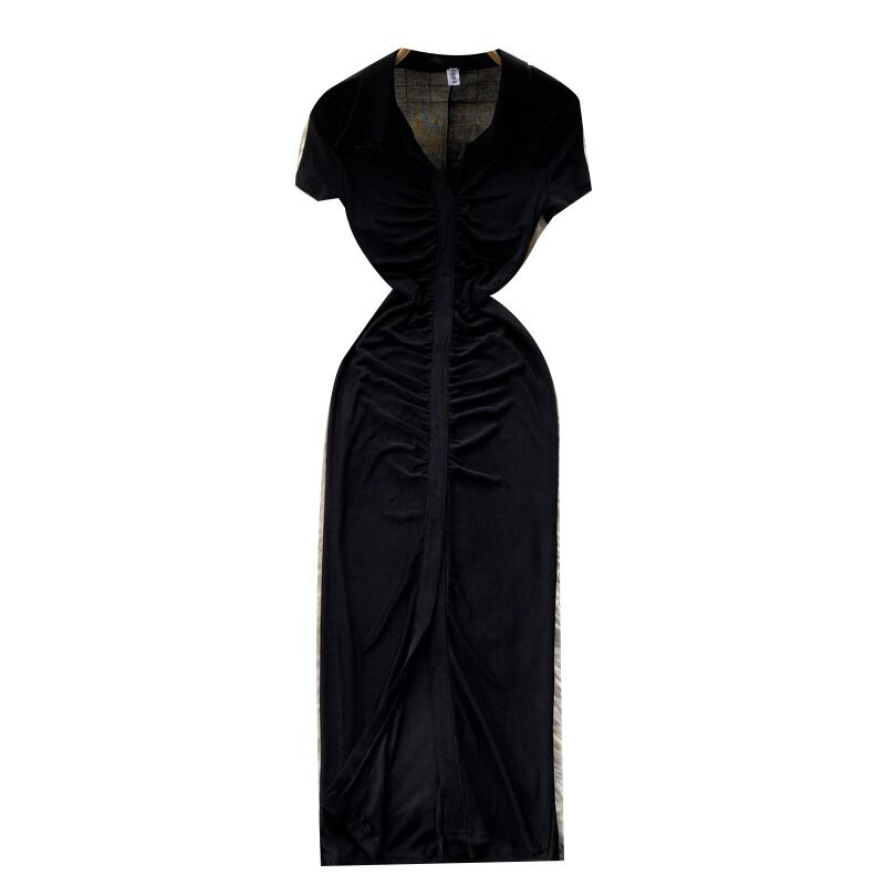 セクシーなドレスの夏の女神ファンXinjiプリーツスリムミドル丈気質リトルブラックドレス2022新しいスカート サマー 夏物 lyxaj77269377988