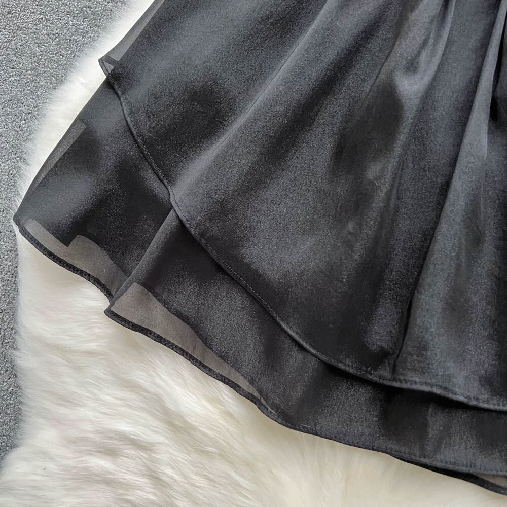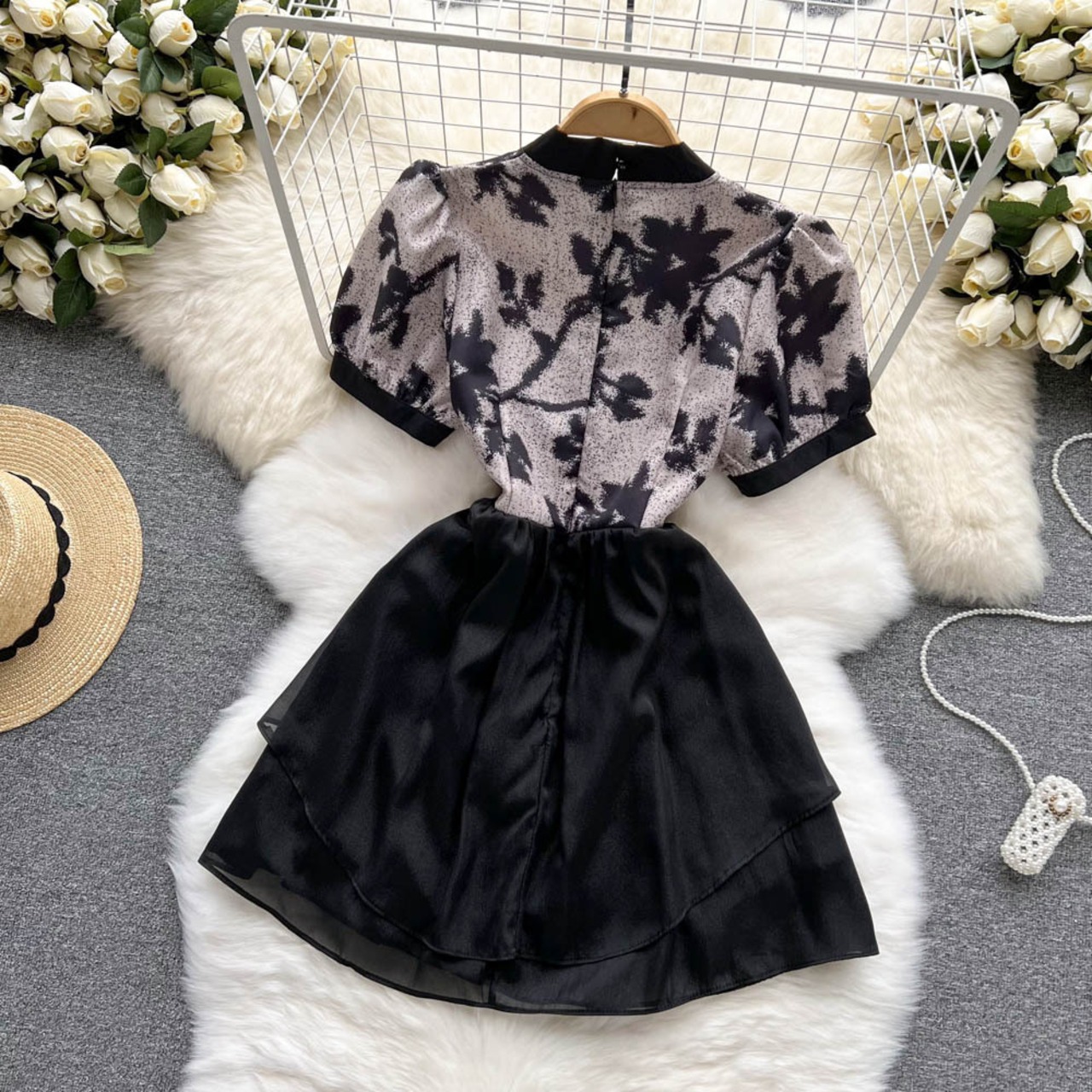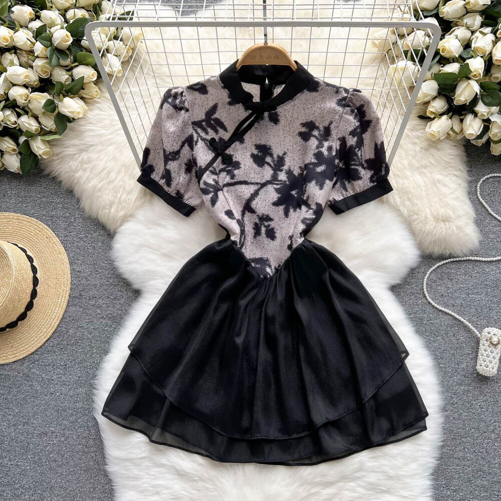 レトロチャイナドレス改良版甘い気質スタンドカラーボタンパフスリーブドレスウエストふくらんでいるショートスカート小柄な男 大人ガーリー スウィート キュート カジュアル lyxaj4766799657