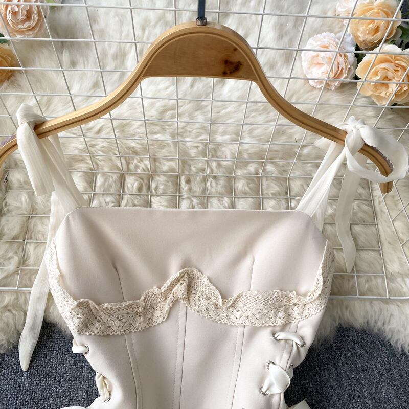 フランスの年齢を減らすサスペンダードレス夏の女性2022年の新しいデザインのウエストステッチシフォンショートスカートトレンディ サマー 夏物 lyxaj98332853556