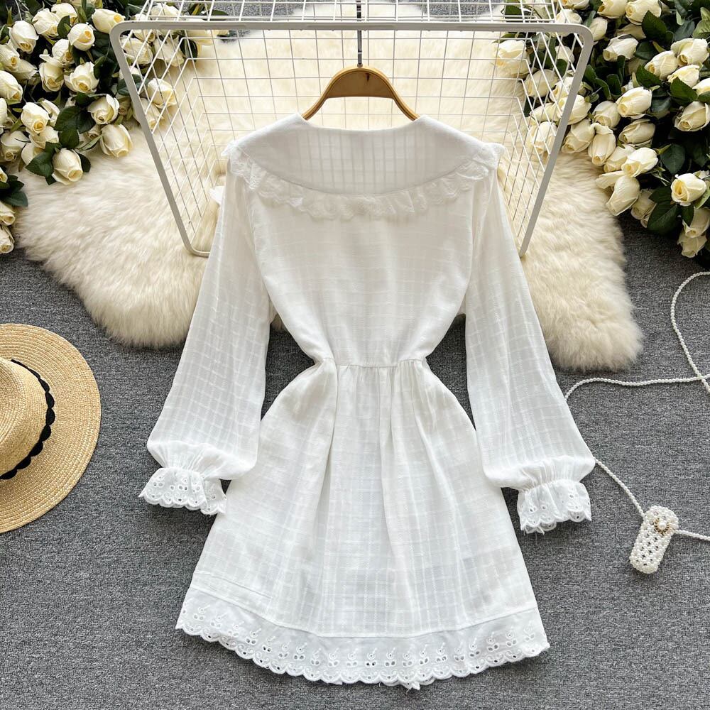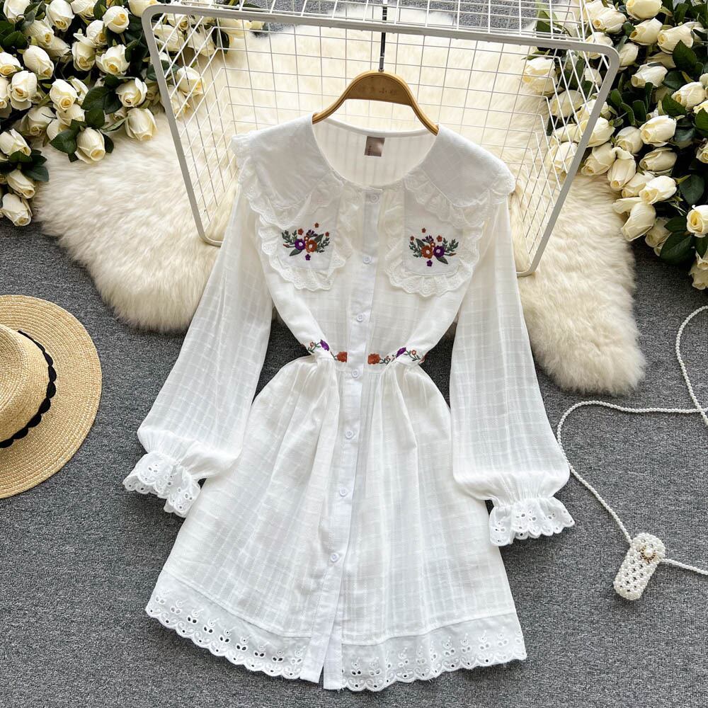 フランスの優しいスタイルのドレス女性の刺繍プリントシングルブレスト人形の襟ウエストスリミング早春レトロスカート レッド スプリング 春物 lyxaj8953289533