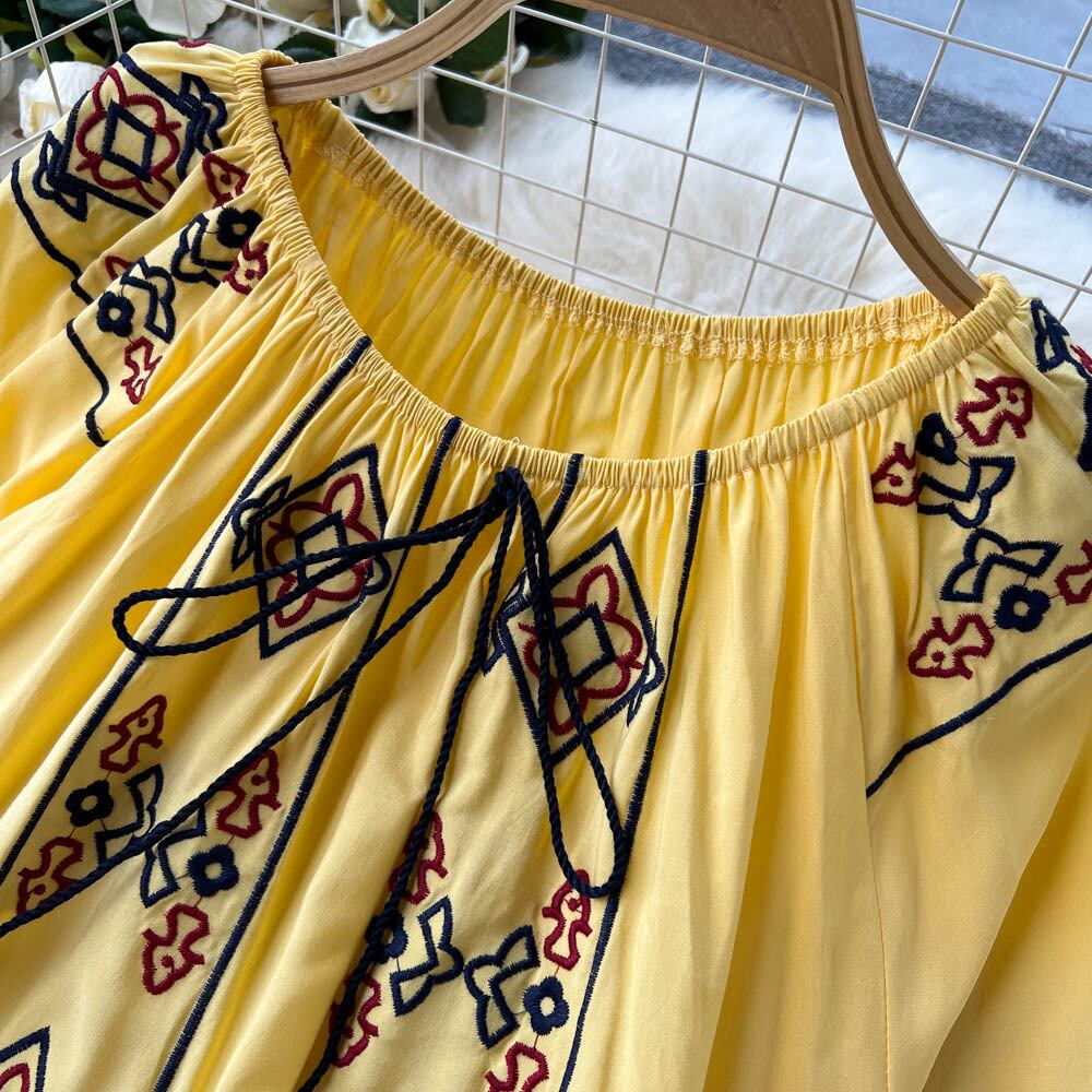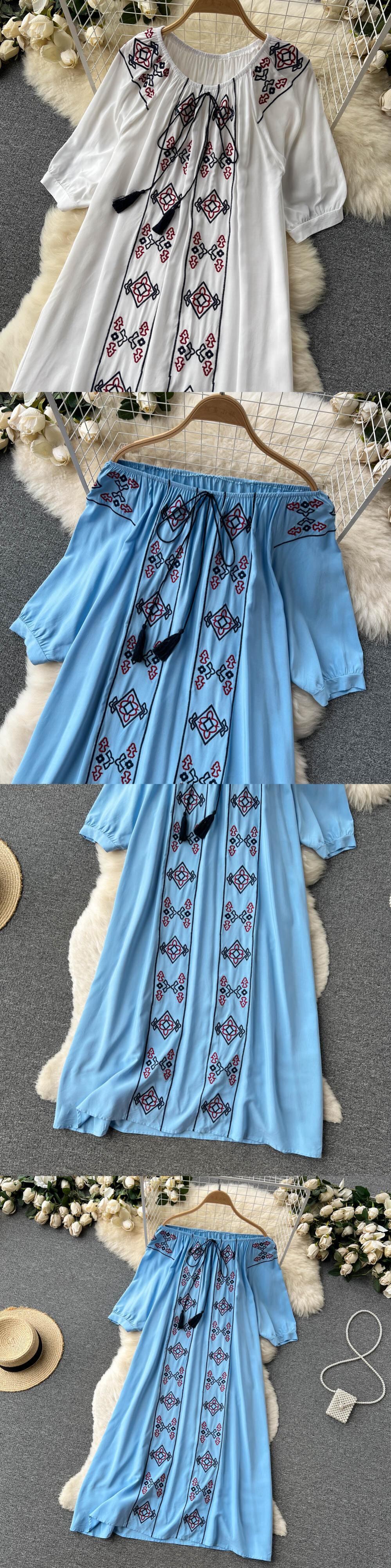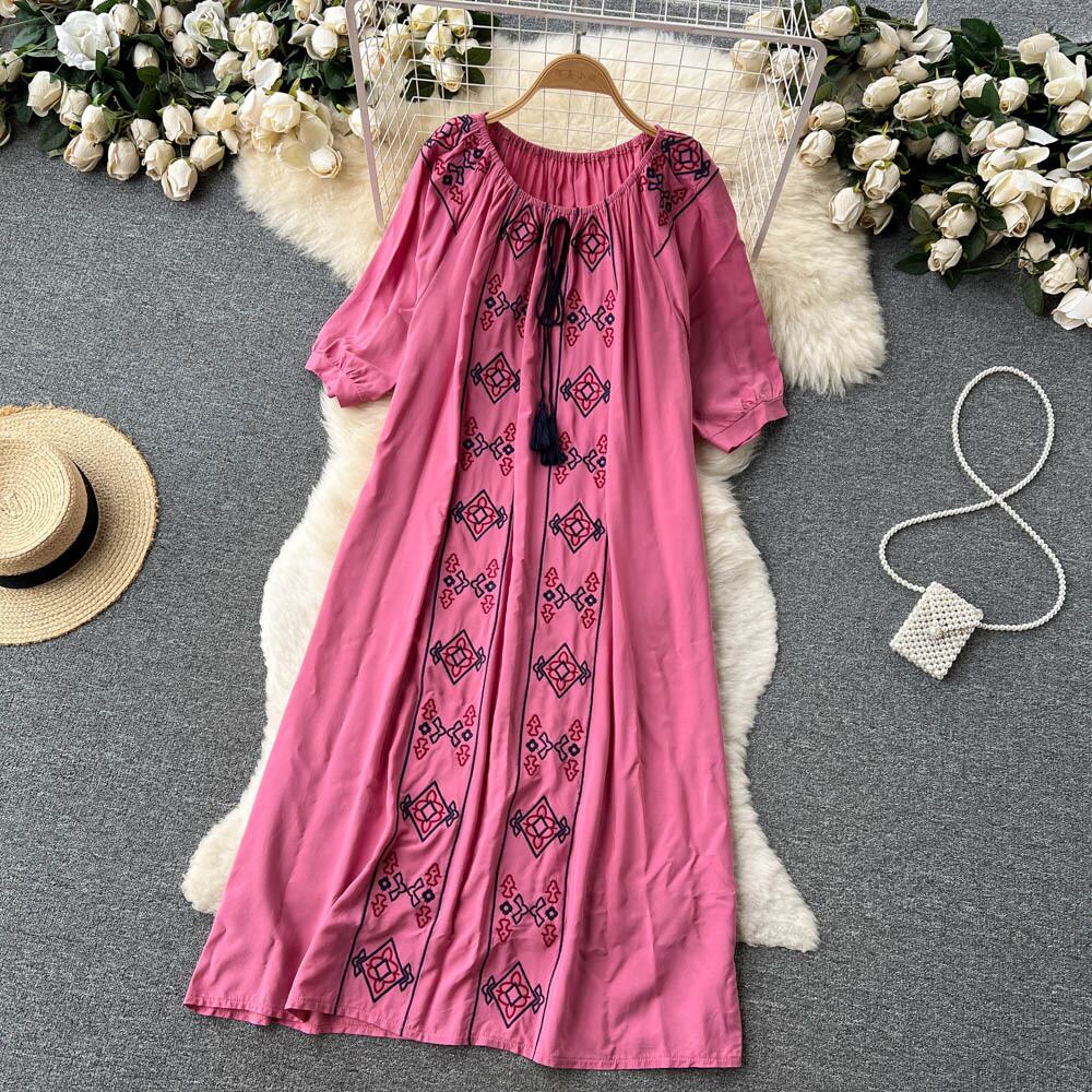 エスニックプリントルーズドレス2022薄夏レディース新作人気半袖ミドル丈スカート今年 サマー 夏物 lyxaj58304715496