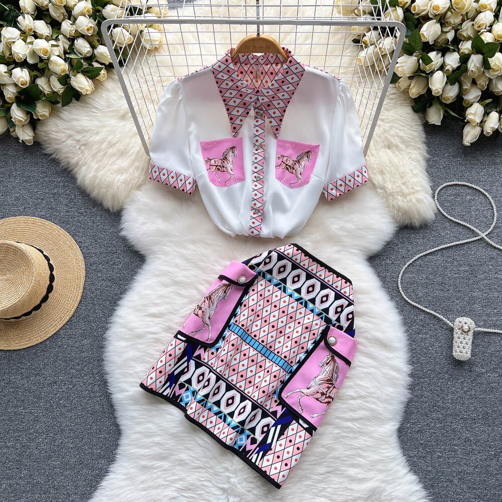 メッシュ気質ライトラグジュアリースーツ女神ファンラペル半袖シャツハイウエストポケットスカートデザインセンススーツタイド ハイウェスト lyxaj72777748217
