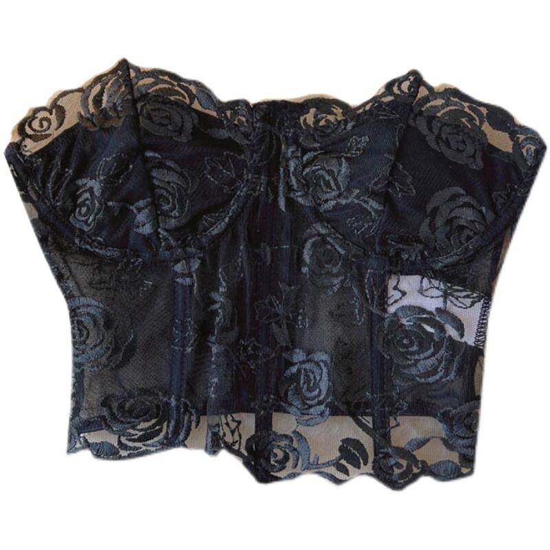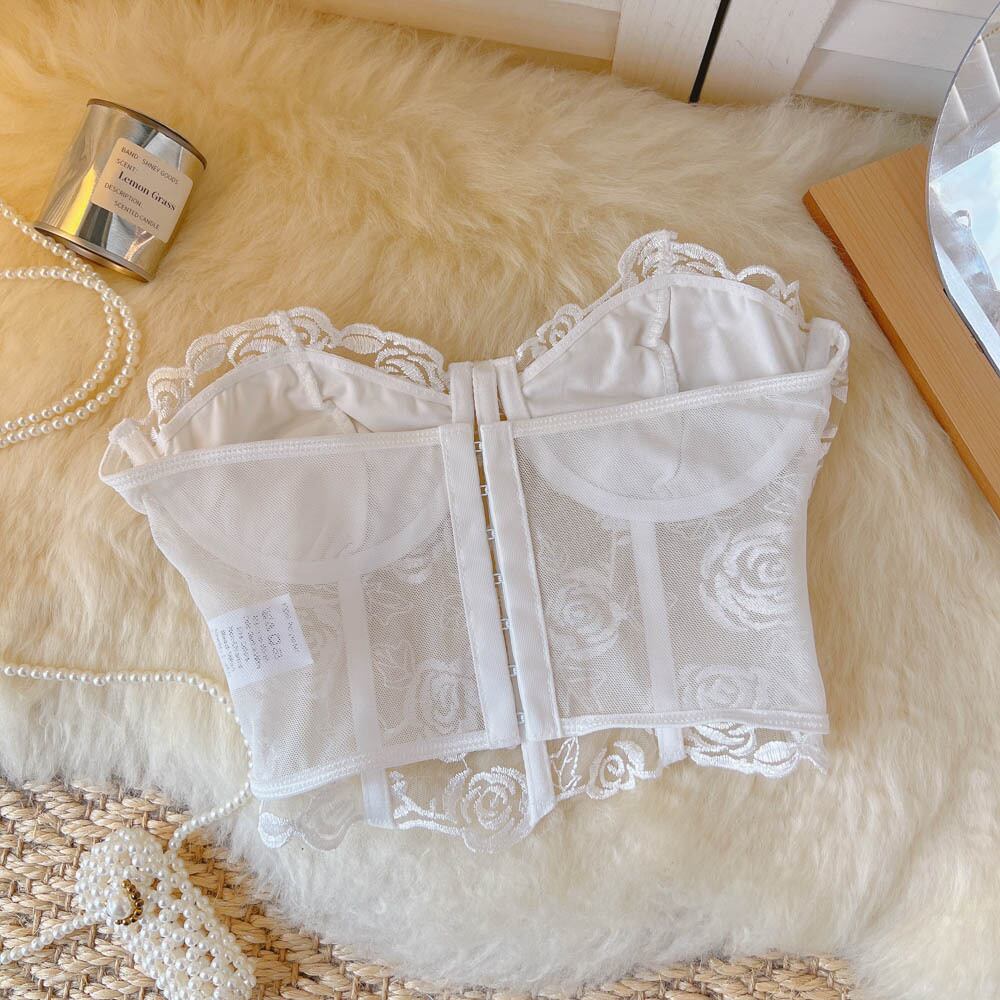 ホワイトフレンチフィッシュボーン下着ピュアデザイストベストセクシーチューブトップトップレディースコルセットアウターウェアショートメッシュ刺繡潮 刺繍 lyxaj29168235040