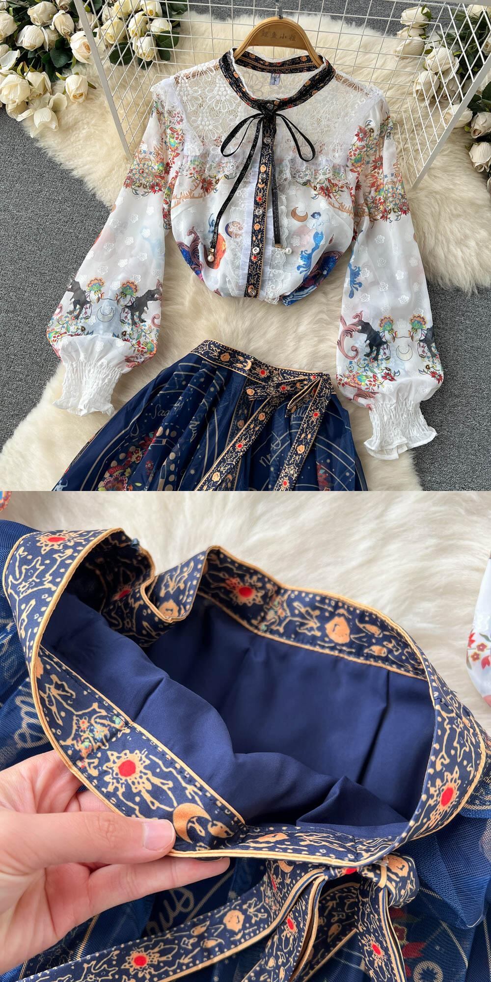 ファッション女神ファンスーツ2022新気質スタンドカラー薄手のプリントシャツ+ハイウエストショーツツーピースセット ハイウェスト ブルマー lyxaj55131540571