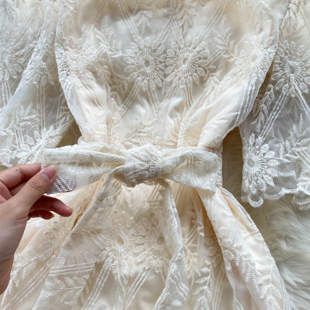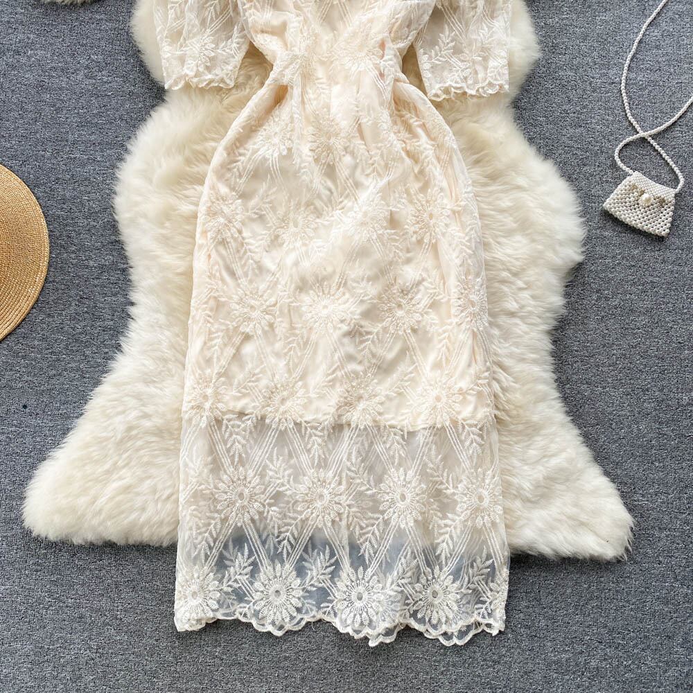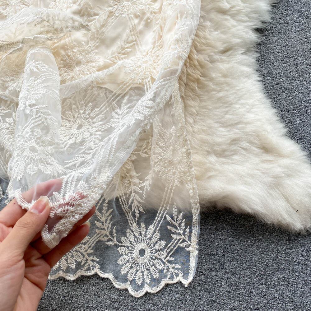 気質の女神ファンフレンチドレスウエストと薄いハイエンド女性中空刺繡スーパーフェアリーパフスリーブロングスカート 刺繍 lyxaj82620875130