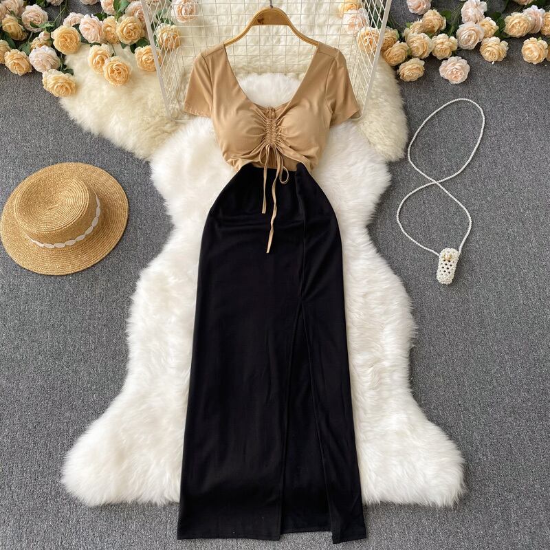 ピュアデザイアVネックチューブトップセクシードレスレディース夏2022新しいたくらみ中空スリムロングセクションヒップAラインスカート サマー 夏物 lyxaj47795210884