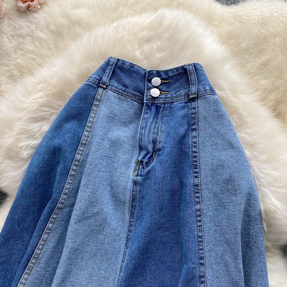春夏新作ミドル丈デニムスカートレディースゆったりとした薄手のカラーマッチング大スイングAラインバッグヒップスカートハイウエストスカート ハイウェスト スプリング 春物 サマー 夏物 lyxaj77569256275