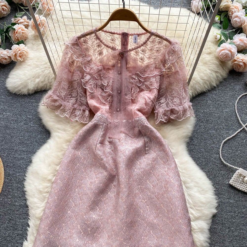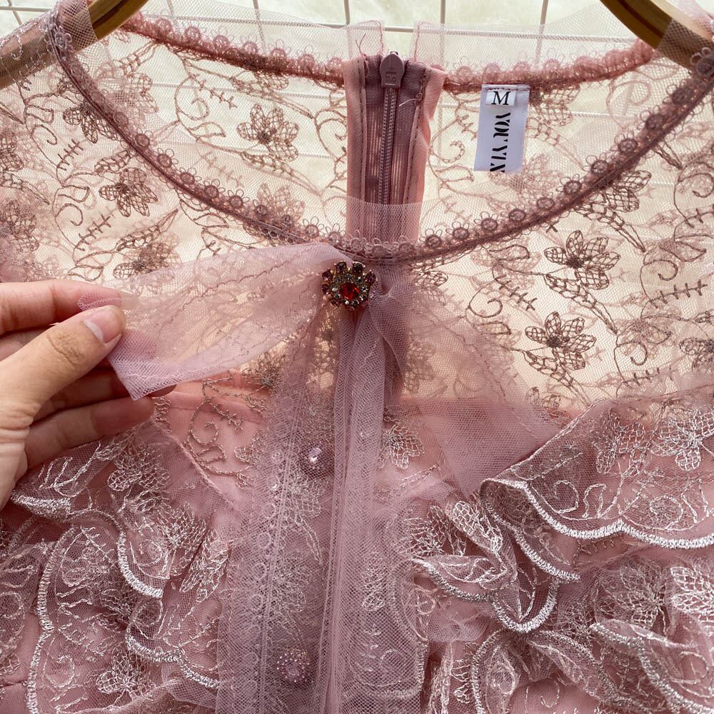 フレンチコートスタイルのハイエンドメッシュ刺繡ワンピース2022年夏の新作スリムスリム気質Aラインスカート 刺繍 サマー 夏物 lyxaj87596854503