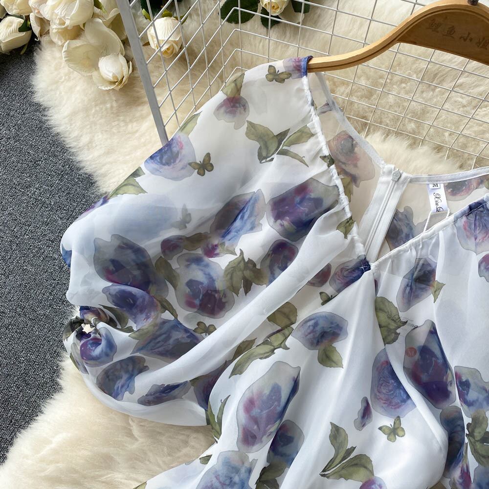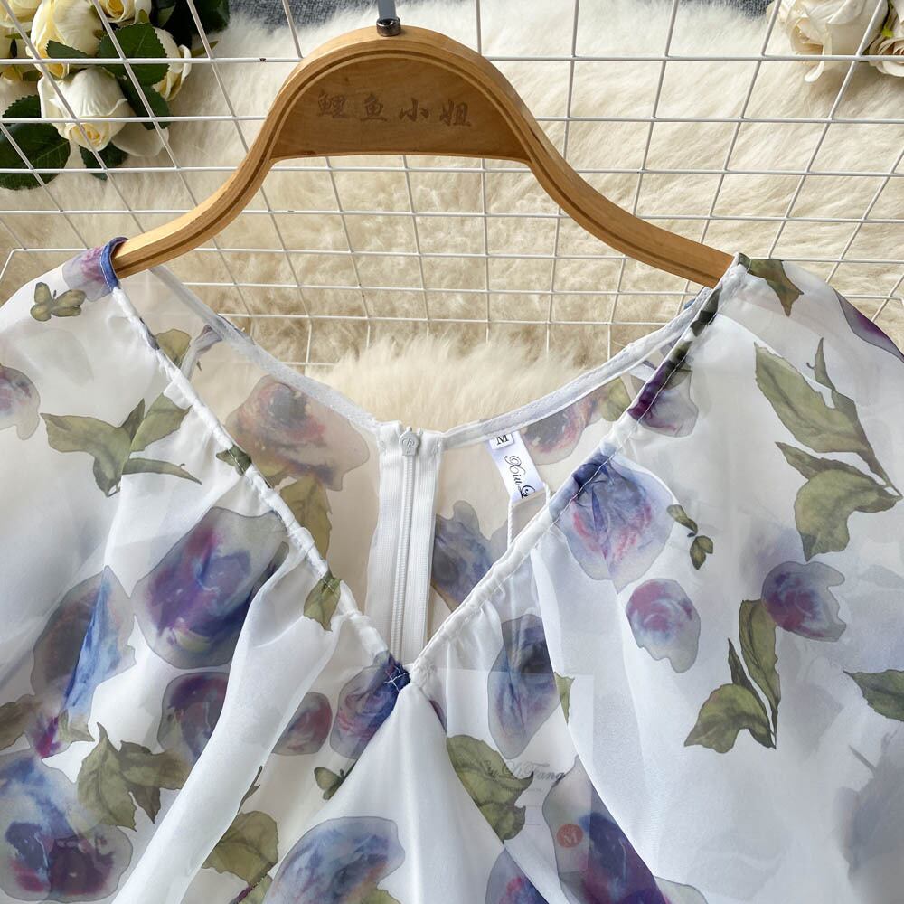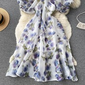 ヨーロッパグッズラージバージョンエイジングパフスリーブワンピースサマーウィメンズデザインセンスニッチプリントミドル丈フィッシュテールスカートトレンディ 夏物 ヨーロピアン lyxaj30575463227