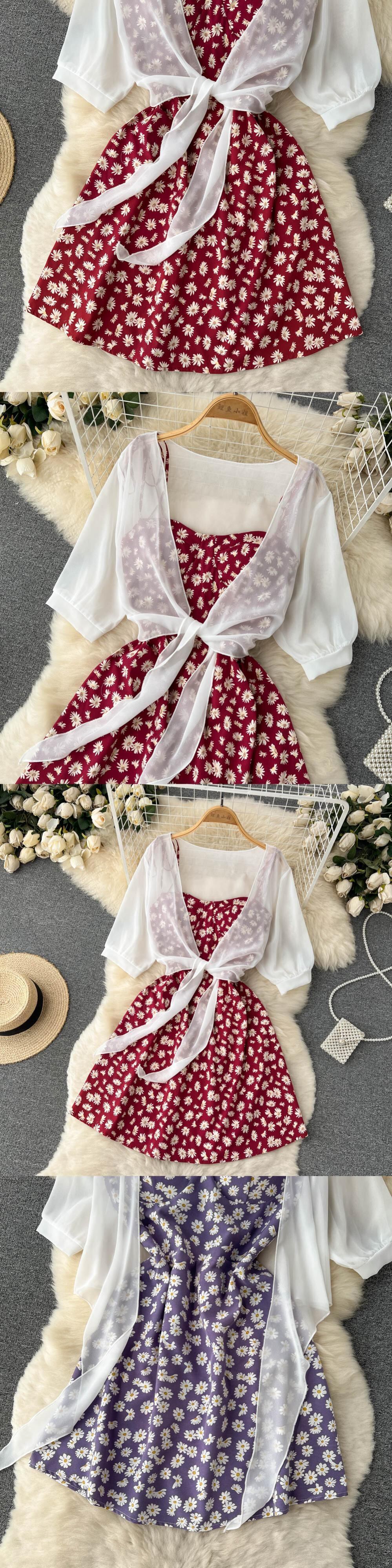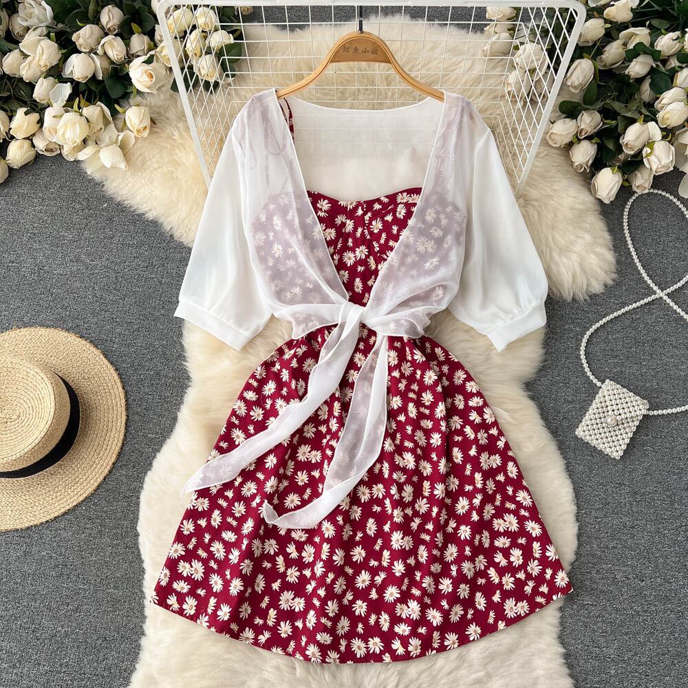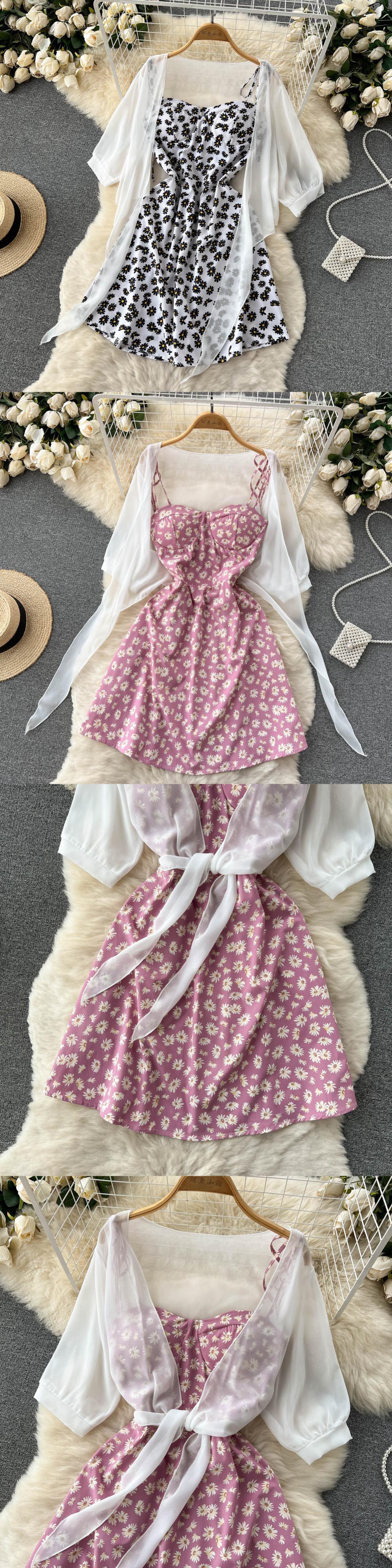 シフォンの小さなショールの女性の夏は、甘くて塩辛いフローラルチューブトップウエストオールマッチ気質ショートスカートドレスツーピースにすることができます 大人ガーリー スウィート キュート カジュアル サマー 夏物 花柄 lyxaj65032085151