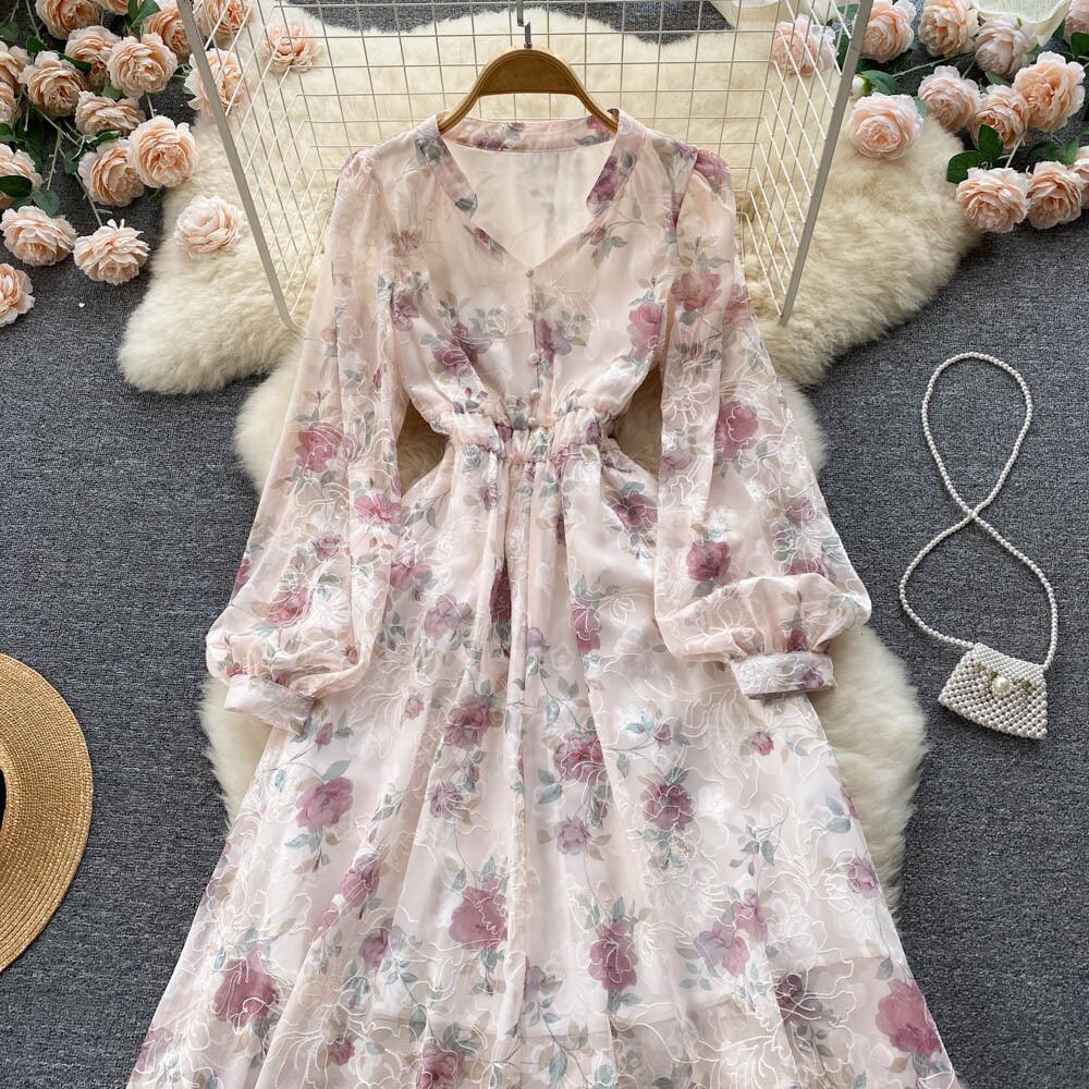韓国語版シックな新しいレトロな花柄のドレスレトロなプリント甘い気質の刺繡ニッチドレス 刺繍 大人ガーリー スウィート キュート カジュアル lyxaj67529960277