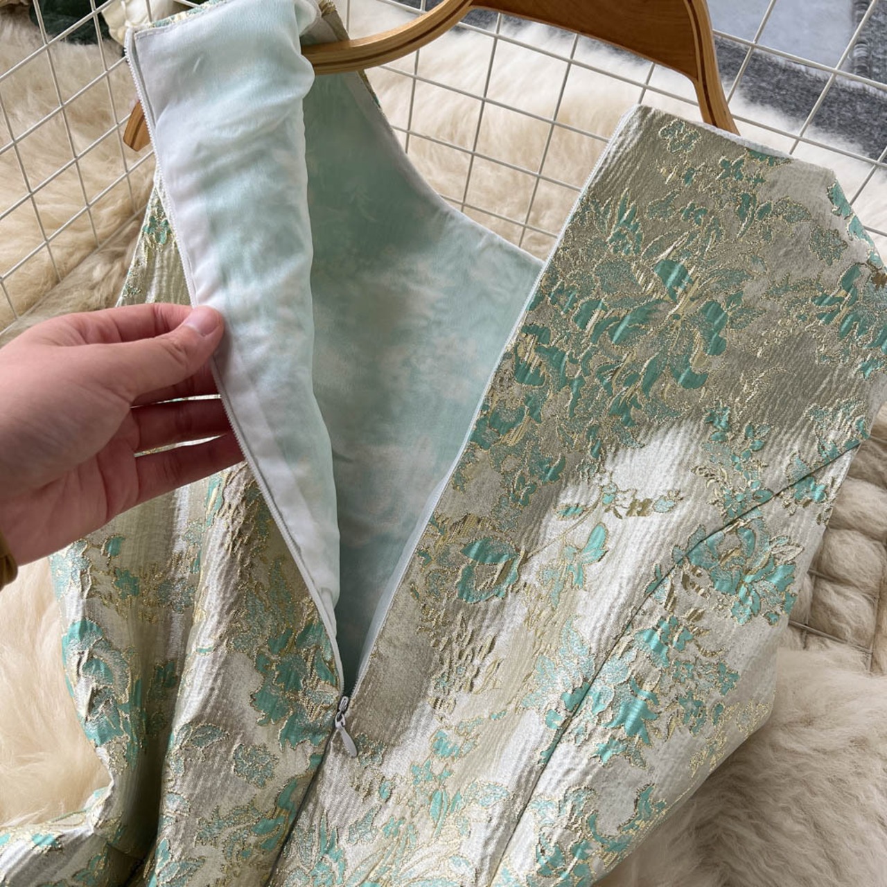 ハイエンドジャカード気質セレブドレスドレス女性の2022年夏新しいハイウエストの薄いふわふわAラインスカート サマー 夏物 lyxaj82719697030