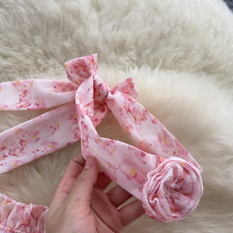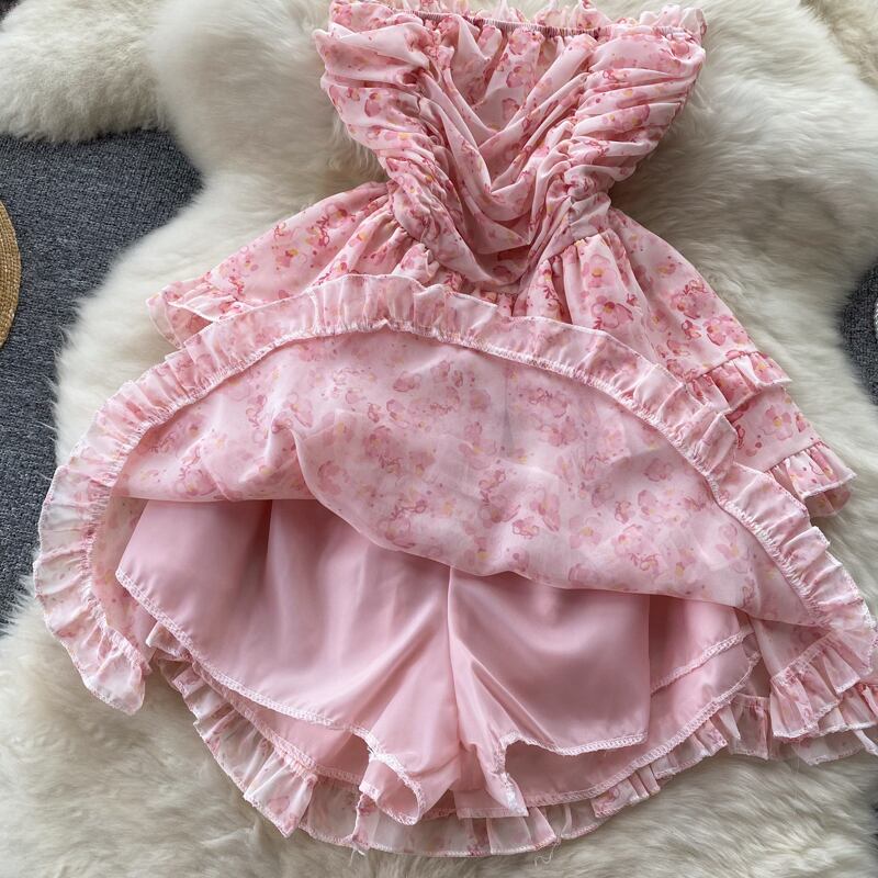 甘くてスパイシーなスタイルのチューブトップドレス2022年夏新しいフリルウエストフローラルショートスカート海辺のホリデースカート 大人ガーリー スウィート キュート カジュアル サマー 夏物 花柄 lyxaj58503461492