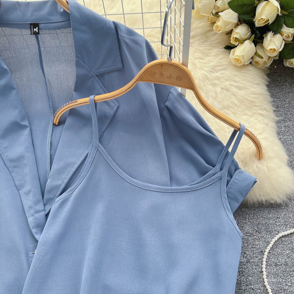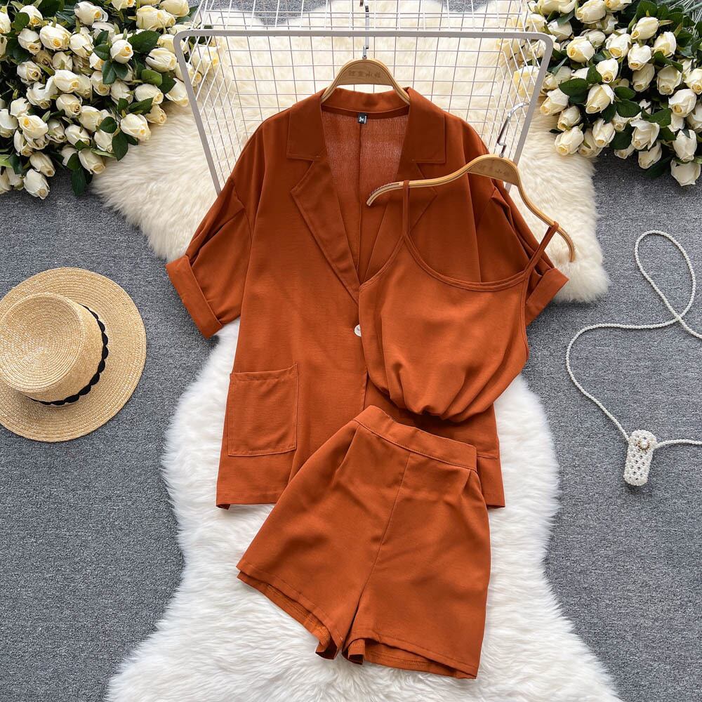 カジュアルスーツレディースサマーニューファッションルーズハーフスリーブシャツジャケットベストレディースインナーショーツスリーピースタイド 夏物 ブルマー lyxaj80642979201