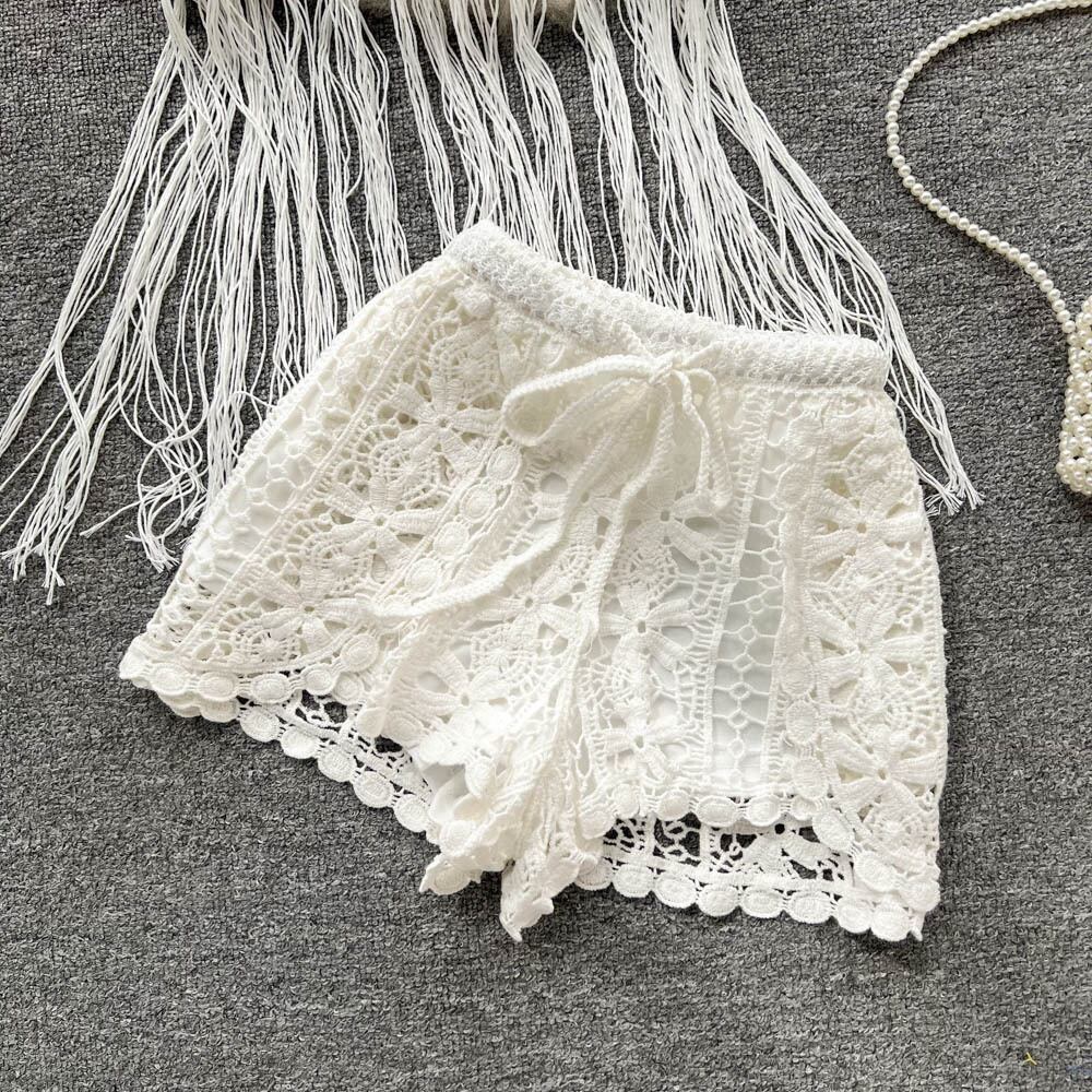 シーサイドホリデーレーススーツレディースサマーセクシーチューブトップショートタッセルベスト+ワイドレッグショートツーピースセット 夏物 ワイドパンツ lyxaj59752833734