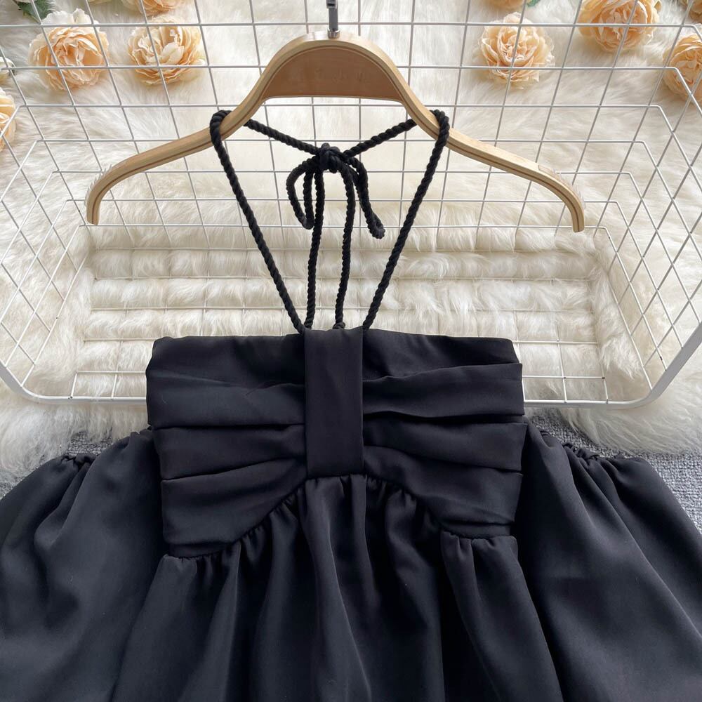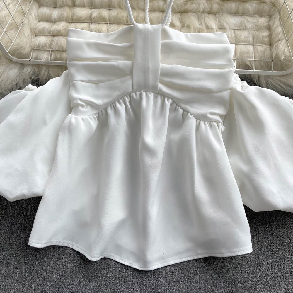 2022年夏の純粋なスリムなショート気質のハンギングネックバブル半袖の甘いガーリーデザインのトップ女性を着用したい 大人ガーリー スウィート キュート カジュアル サマー 夏物 ピュア lyxaj89399051463