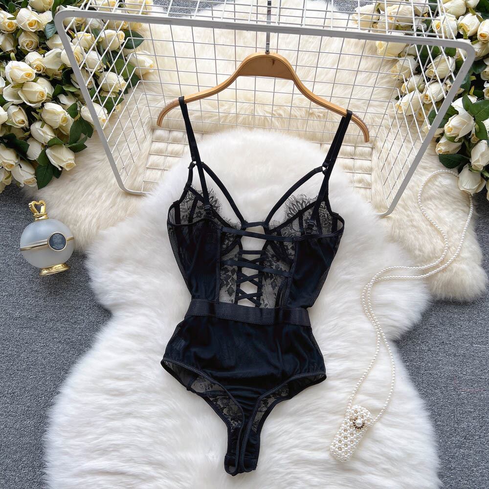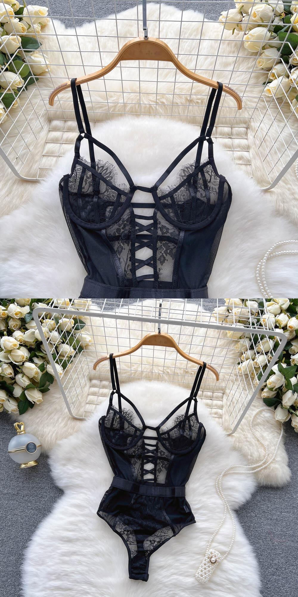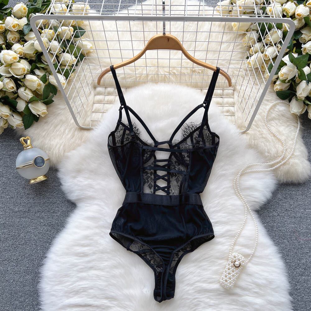 セクシーなレーススリムフィットパースペクティブコルセットジャンプスーツ2022新しい純粋な欲望ホット誘惑サスペンダーワンピース下着 ピュア lyxaj38403089463