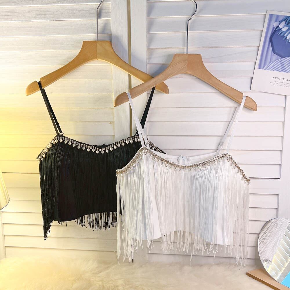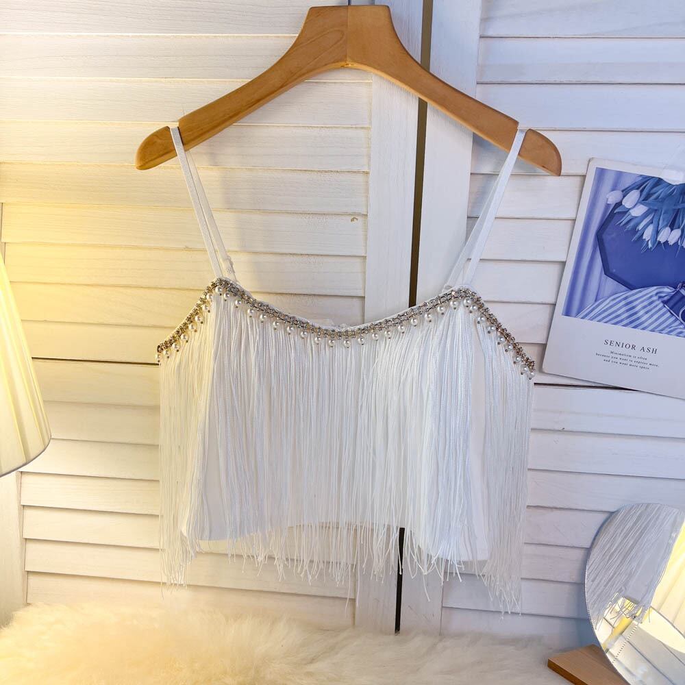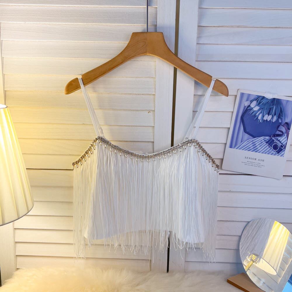 タッセルビーズビーズの短いへそキャミソールの女性が甘くてスパイシーなスタイルのハイウエストオールマッチトップトレンディを着ているシックなデザイン ハイウェスト ショート 大人ガーリー スウィート キュート カジュアル lyxaj58713932435