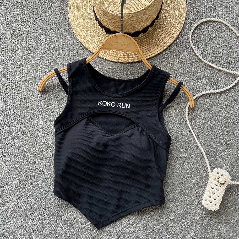 キャミソールレディースサマーアウターウェアスリムハイウエストおへそショートボトムシャツノースリーブスポーツトップトレンディ 夏物 lyxaj14613882206