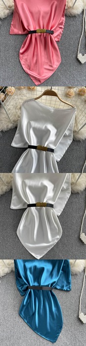 テンペラメントセレブサテンTシャツレディースミドル丈デザインセンスニッチウエストスリミング無地シンプルオールマッチトップトレンディ ソリッドカラー lyxaj13305944878