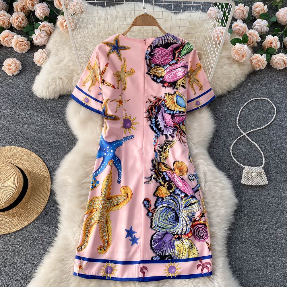 夏の新しいヨーロッパとアメリカのコートスタイルの小さな丸い首フランスの気質プリント痩身デザインニッチドレス サマー 夏物 Oネック ヨーロピアン lyxaj30156380231