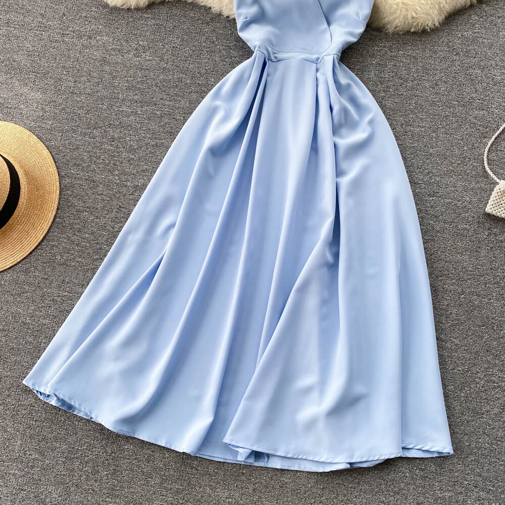 夏の新しいフレンチスタイルの小さな新鮮な優しい風のウエストオープンバッククロスストラッププリンセス大スイングルーズドレス サマー 夏物 lyxaj10566291905