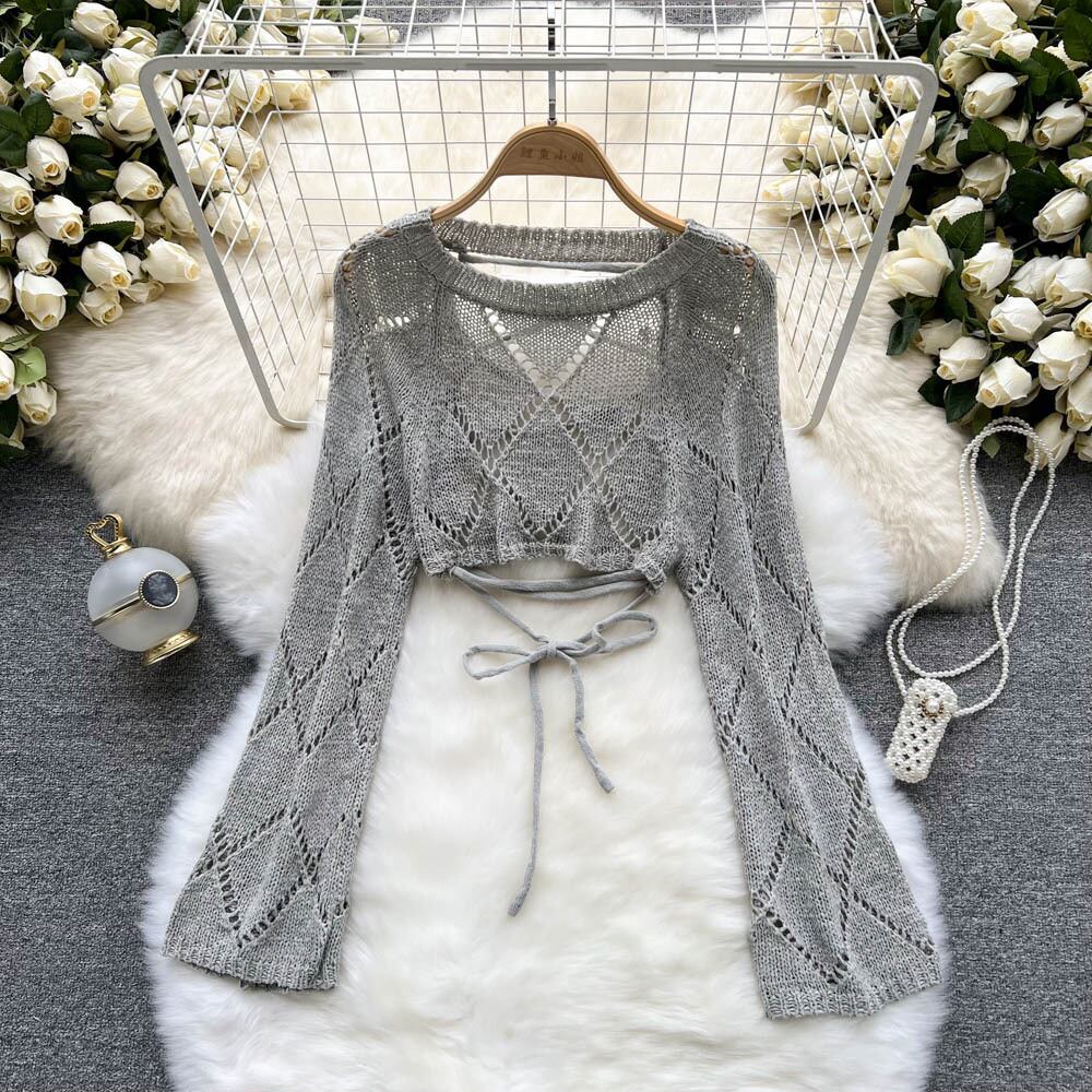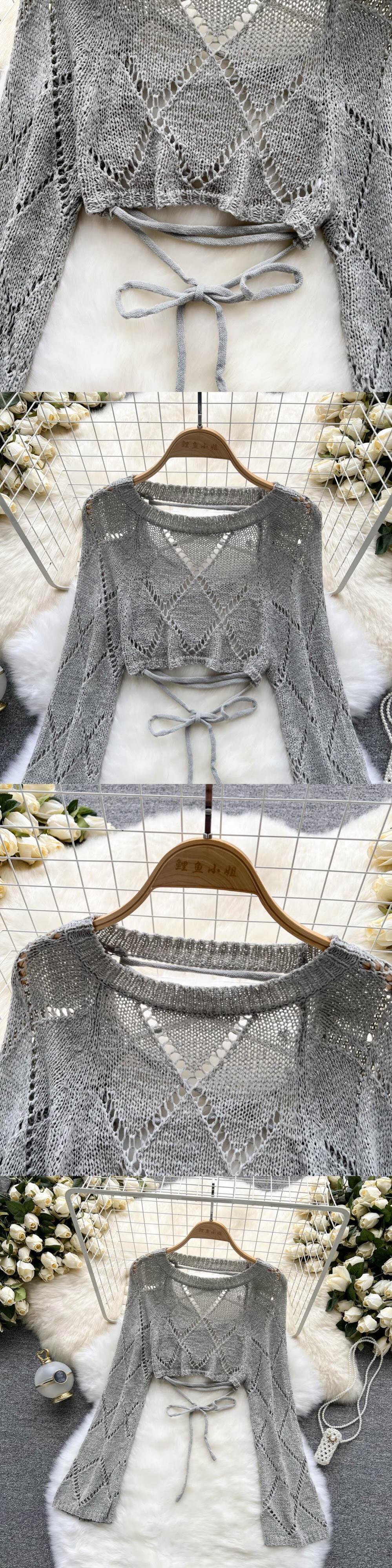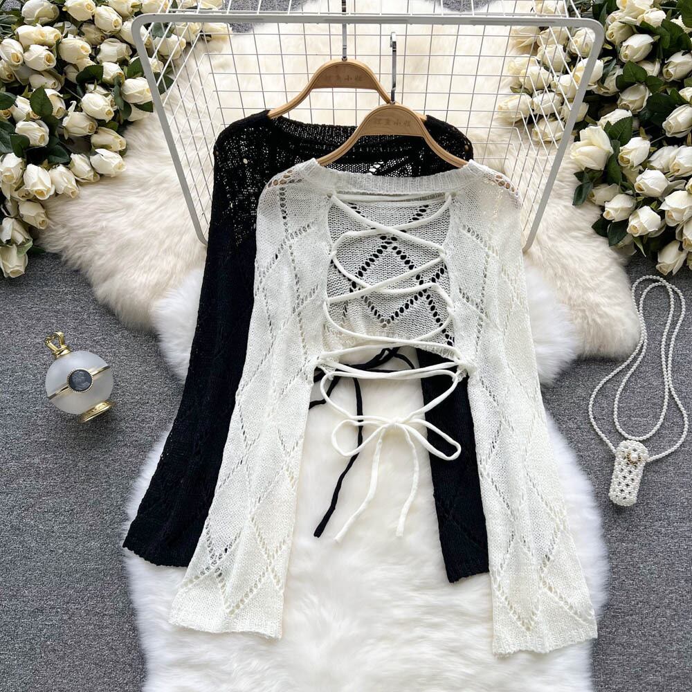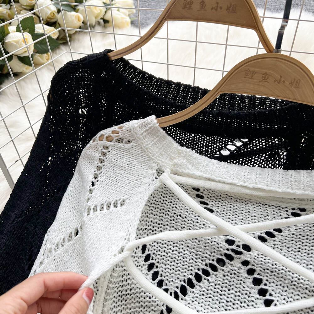 デザインセンスニッチ日焼け止めブラウス女性の2022年夏の新しい陰謀中空バックレスストラップショートニットトップ サマー 夏物 lyxaj23381333060