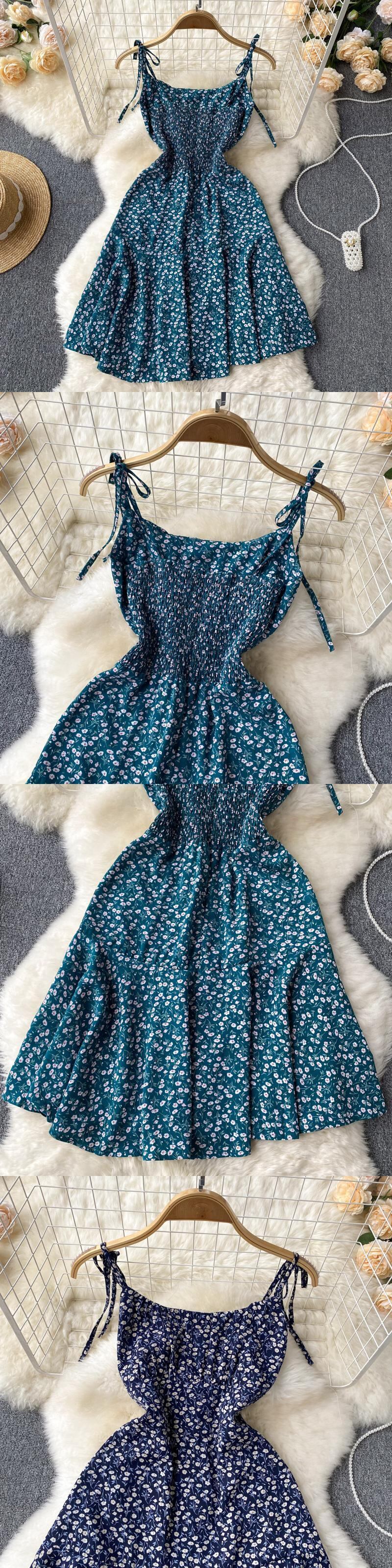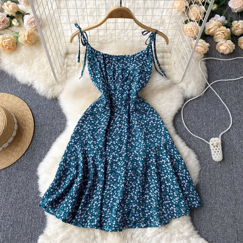 レトロなチューブトップサスペンダースカート2022年夏小さな新鮮でスリムなスリムな花柄のドレスの女性の新しい韓国語バージョン サマー 夏物 lyxaj18171589532