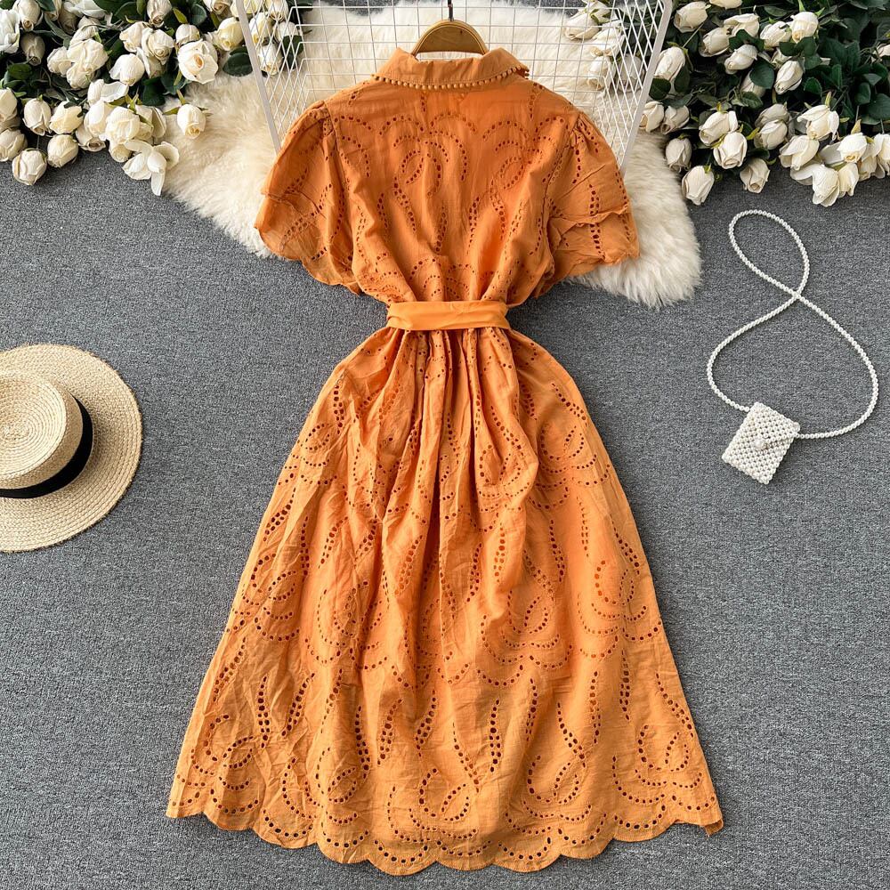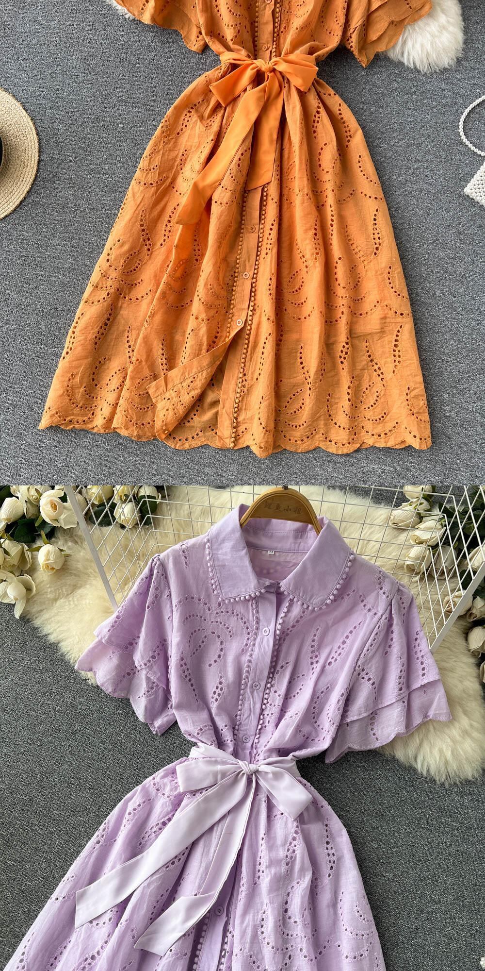 ティーブレイクフレンチレトロ気質中空ドレス女性2022年夏新しいウエストネクタイスーパーフェアリービッグスイングドレス サマー 夏物 lyxaj37628132867