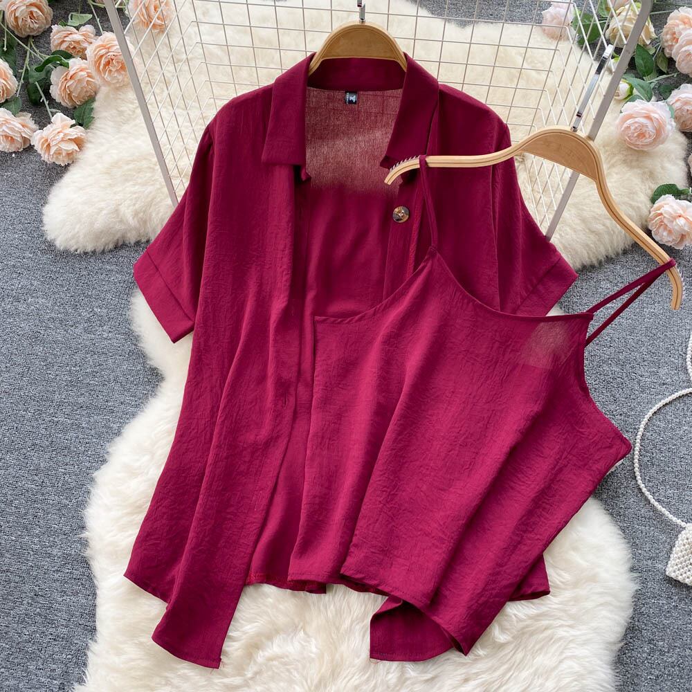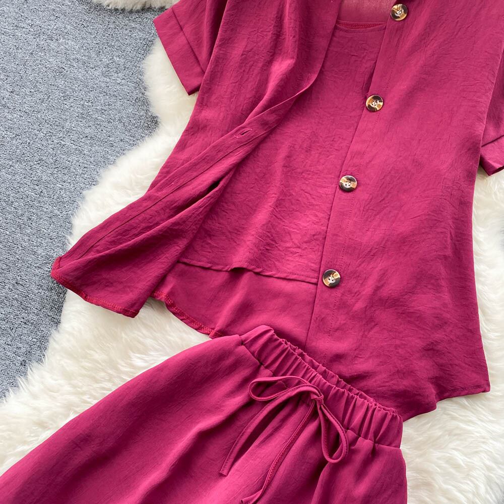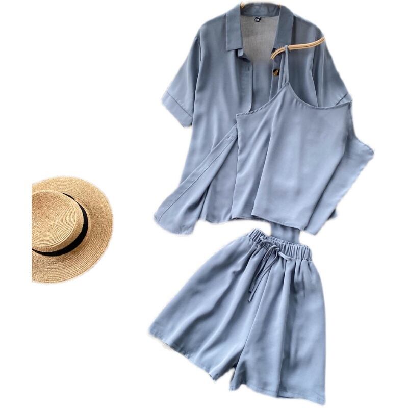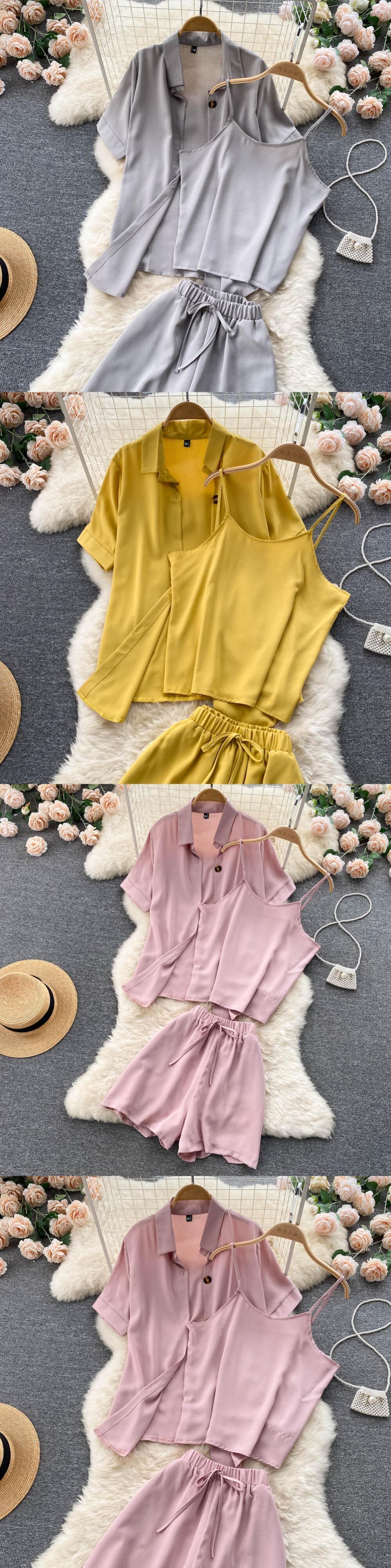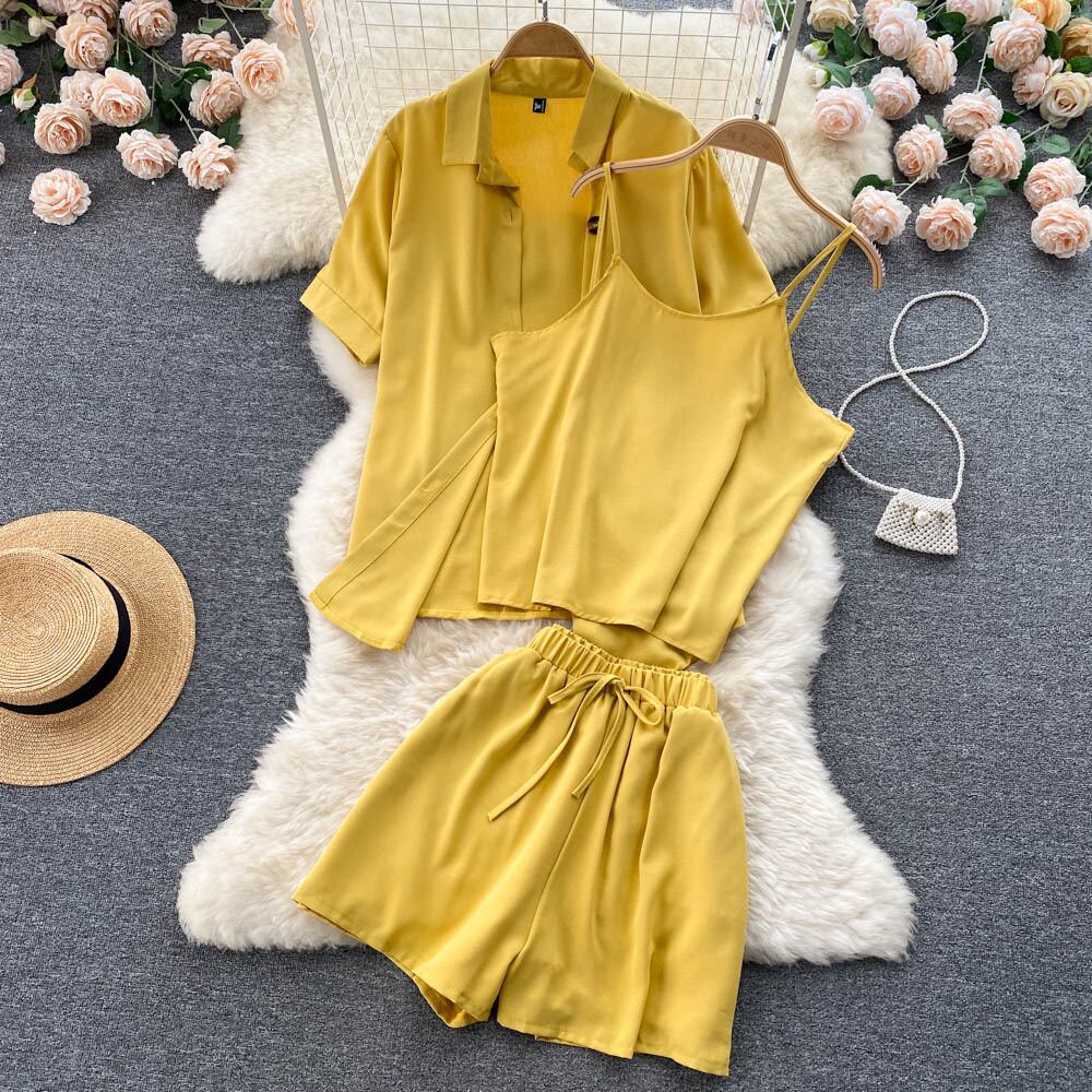 カジュアルファッションは塩辛くて甘いスーツ女性の夏の新しい無地の気質半袖シャツショーツベストスリーピーススーツにすることができます 大人ガーリー スウィート キュート サマー 夏物 ブルマー ソリッドカラー lyxaj89915578164