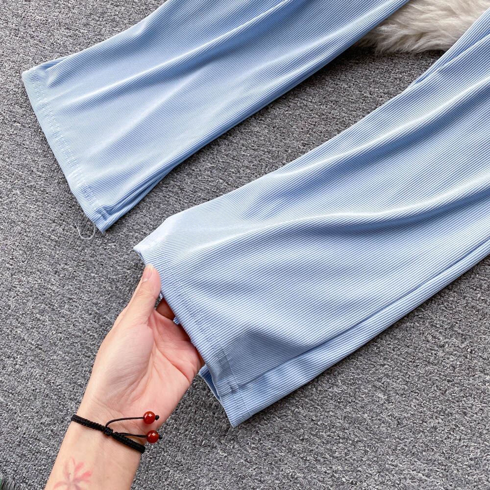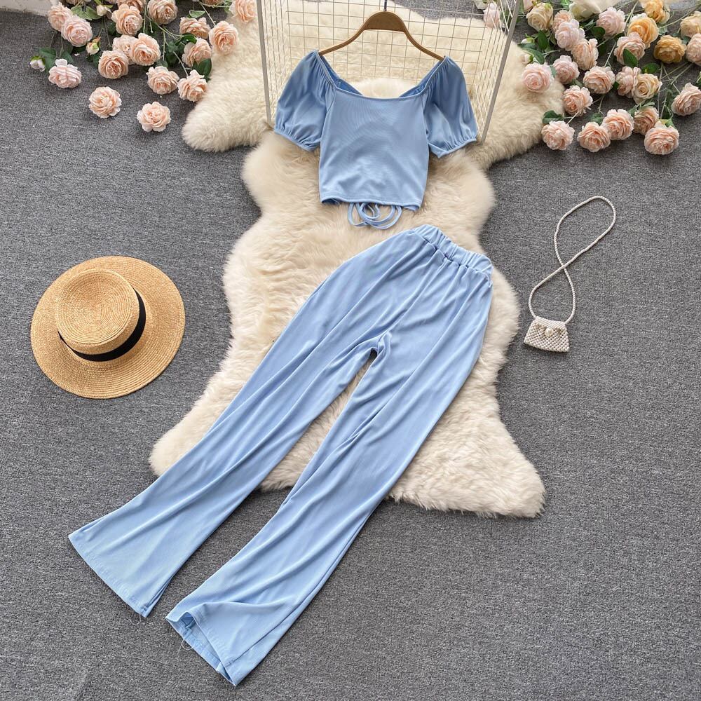 サマーファッションスーツレディースプリーツ巾着ショートクロップトップハイウエストカジュアルワイドレッグパンツオールマッチツーピースセット ハイウェスト 夏物 ワイドパンツ lyxaj63699227864