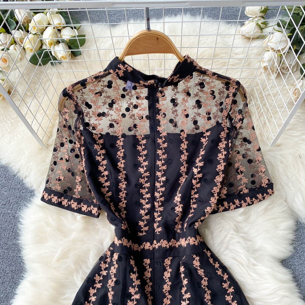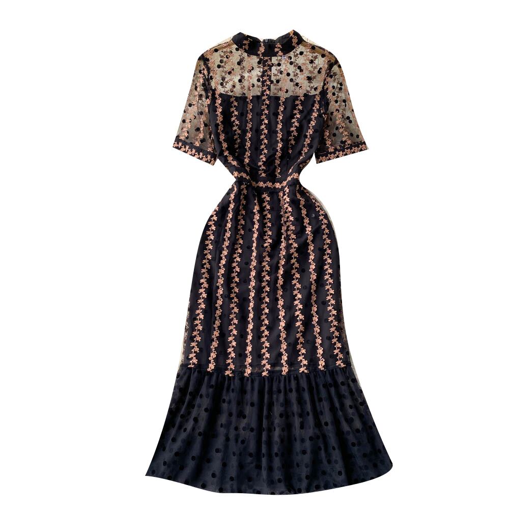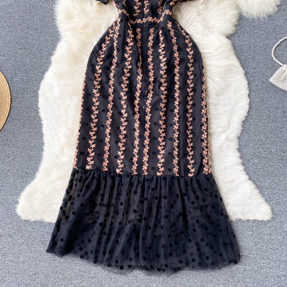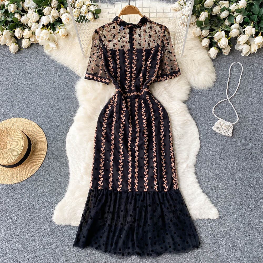 女神気質セレブバンケットドレススカートハイエンドメッシュ刺繡妖精ロングスカート甘い超妖精フィッシュテールドレス 刺繍 大人ガーリー スウィート キュート カジュアル lyxaj23802495992
