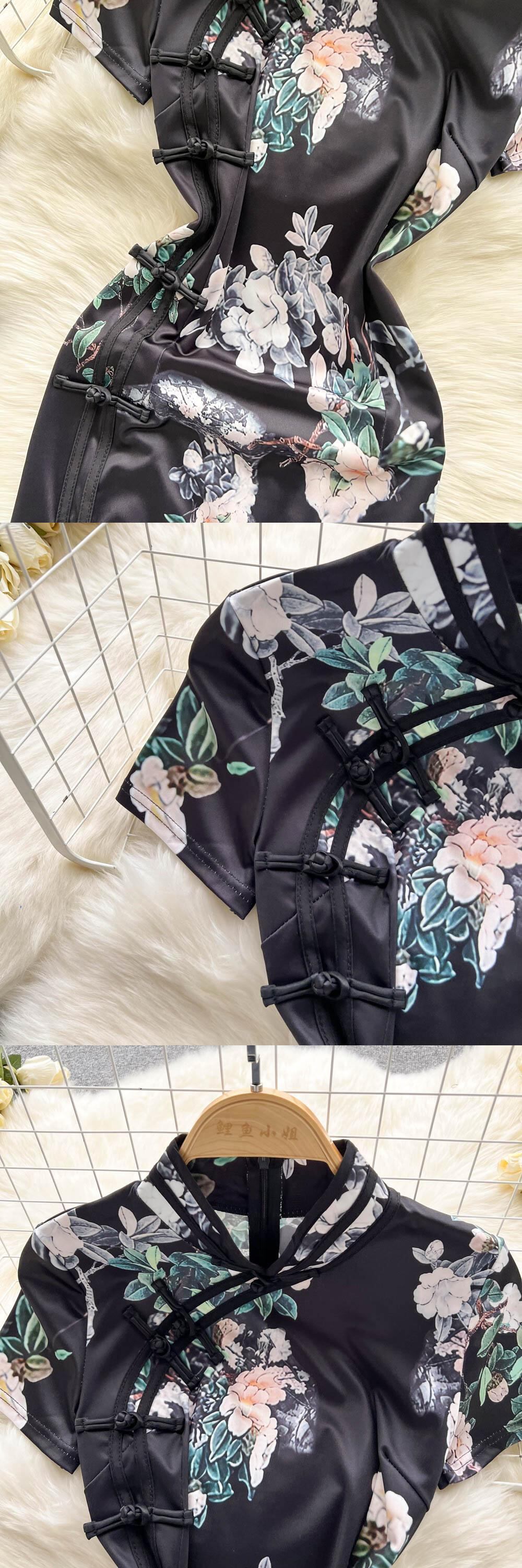 黒のチャイナドレス2022新しい改良された中国風の若い気質のハイエンドレトロなプリントドレスの女性 ブラック lyxaj16470139877