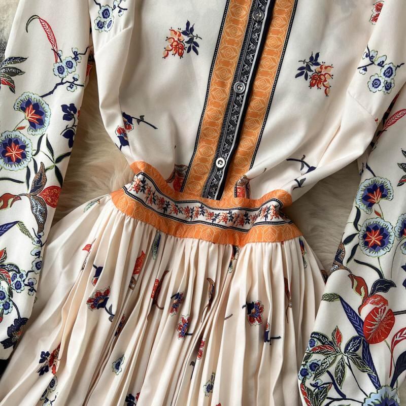 2022年の新しいフレンチドレスの女性の秋と冬のデザインプリーツプリントレディース気質ファッションドレスロングスカートトレンド オータム 秋物 ウィンター 冬物 lyxaj7947351666