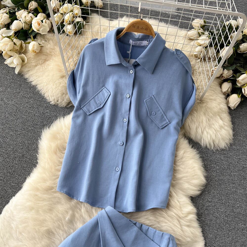 プロの通勤スーツ女性の夏の新しいノースリーブラペルルーズ気質トップハイウエストプリーツスカートツーピースセット ハイウェスト サマー 夏物 lyxaj70533242672