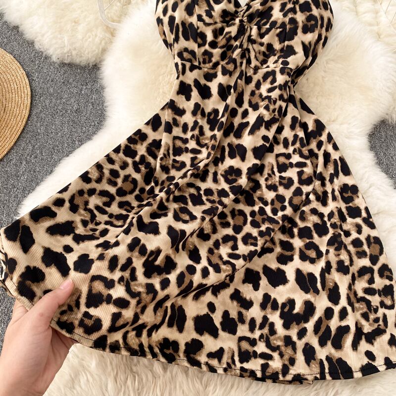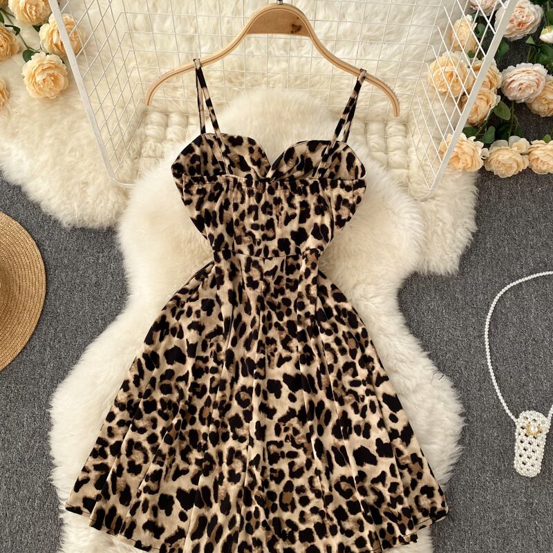 セレブ気質ヒョウ柄ホットガールネットレッドセクシーピュアデザイアホットガールスタイルサスペンダードレスタイトバッグヒップショートスカート lyxaj41857181527
