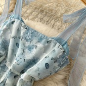 メッシュボウスリングフェアリースカート韓国版半袖フローラルドレスサマーウエスト薄気質レディーススカート リボン 夏物 花柄 lyxaj60198198881
