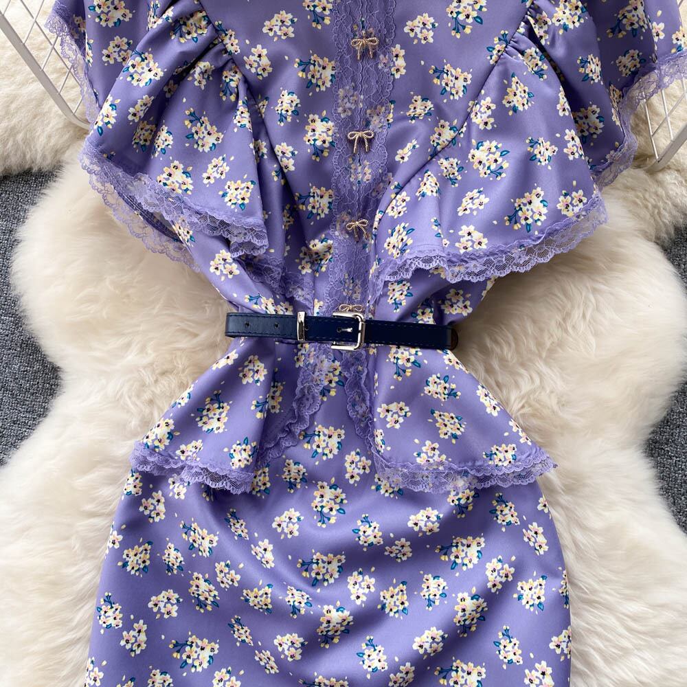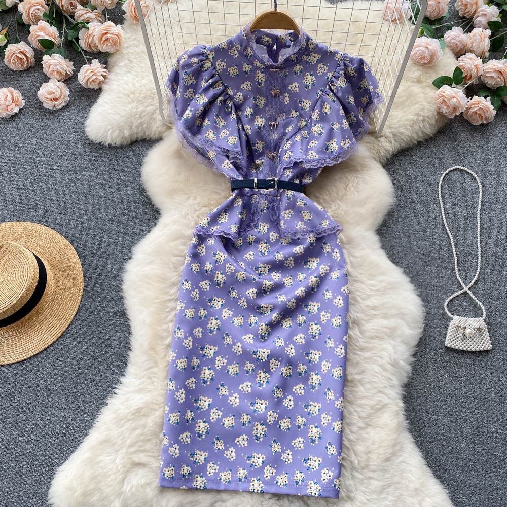 2022年夏新韓国版気質自家栽培フローラルレトロスリムロングレースレースシフォンドレス サマー 夏物 花柄 lyxaj57186099504